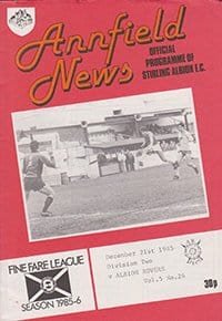 Match: Stirling Albion v Albion Rovers Competition: Scottish League Division 2 Date: 21-12-1985 Comments: Rating: 4 Condition: Very good Weight in grams: 40