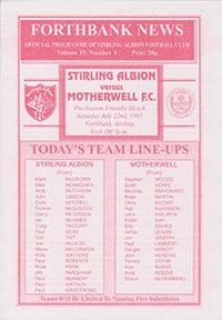 Match: Stirling Albion v Motherwell Competition: Friendly Date: 22-07-1995 Comments: 4 page issue Rating: 4 Condition: Very good Weight in grams: 40