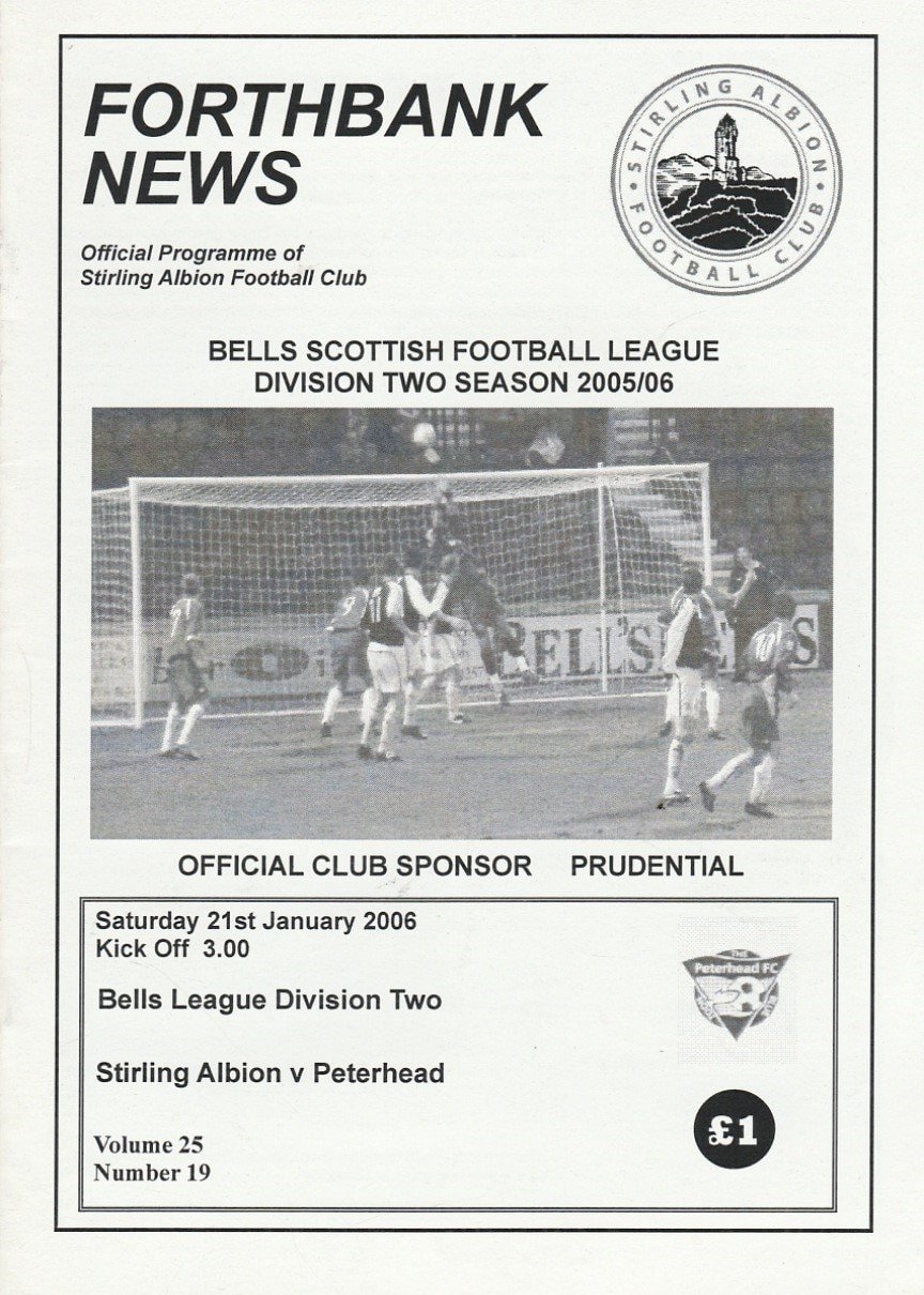 Match: Stirling Albion v Peterhead Competition: Scottish League Division 2 Date: 21-Jan-2006 Comments: Rating: 4 Condition: Very good Weight in grams: 40