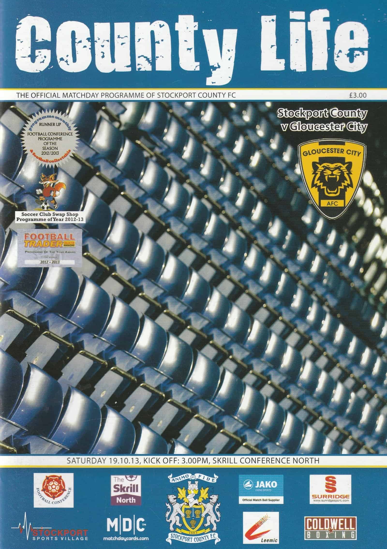 Match: Stockport County v Gloucester City Competition: Skrill North Date: 19-Oct-2013 Comments: Rating: 4 Condition: Very good Weight in grams: 160