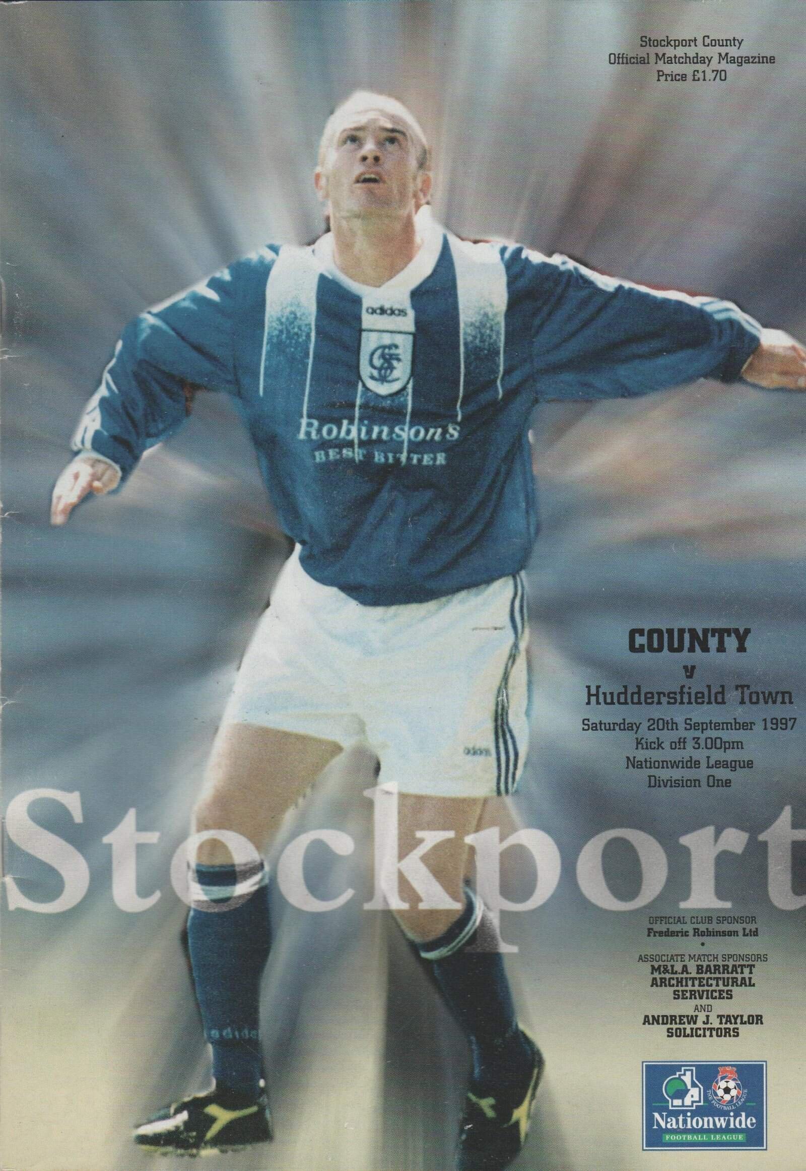 Match: Stockport County v Huddersfield Town Competition: League Division 1 Date: 19-Dec-1994 Comments: Rating: 4 Condition: Good Weight in grams: 160