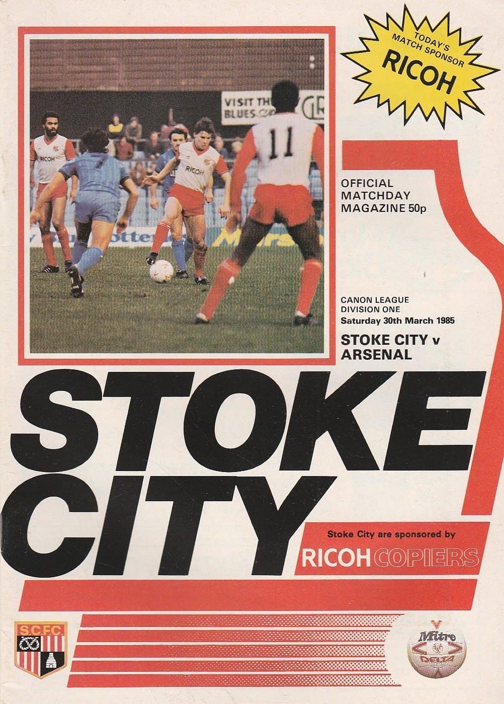 Match: Stoke City v Arsenal Competition: League Division 1 Date: 30-03-1985 Comments: Rating: 4 Condition: Very good Weight in grams: 100