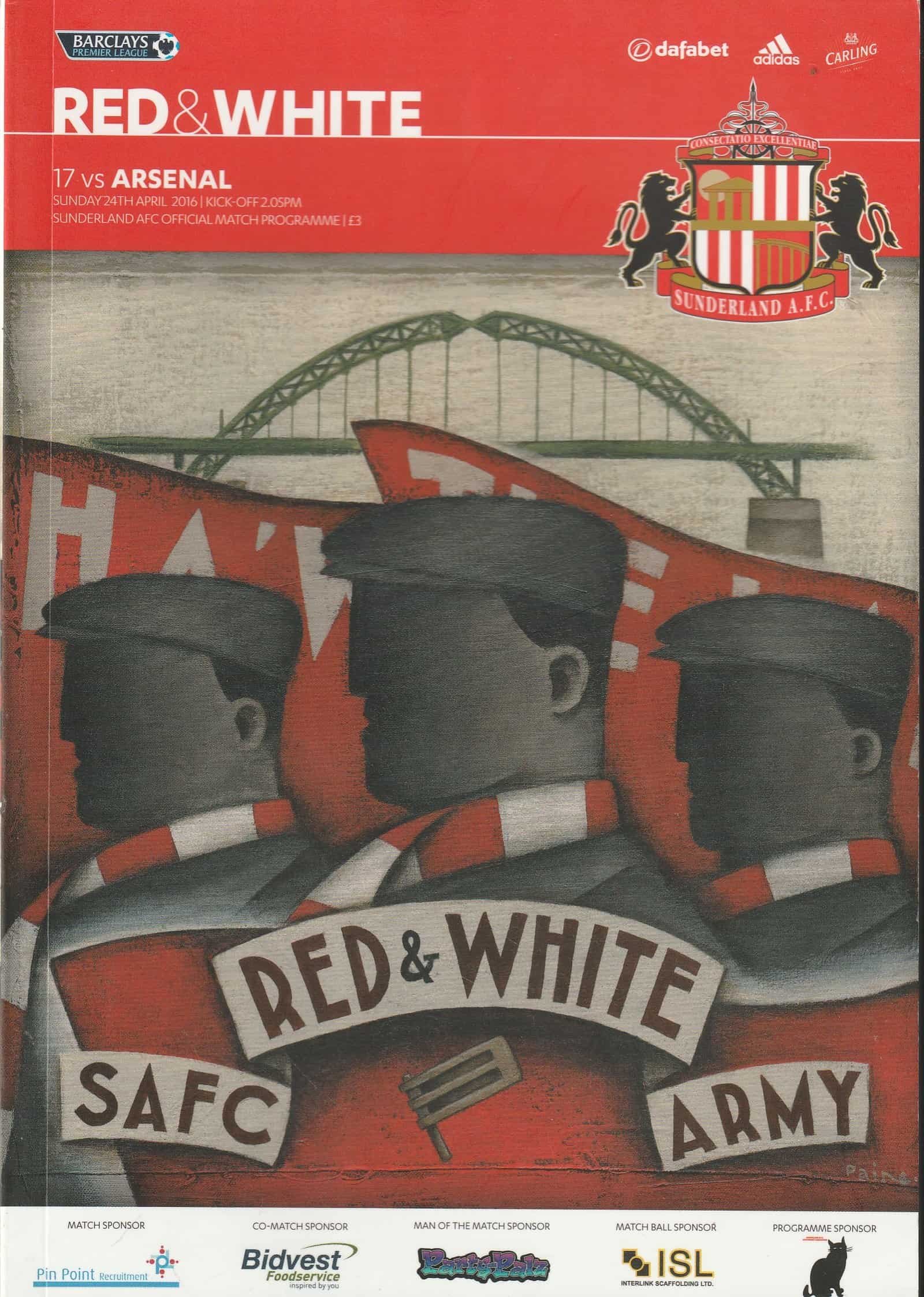 Match: Sunderland v Arsenal Competition: Premier League Date: 24-Apr-2016 Comments: Rating: 5 Condition: Excellent Weight in grams: 260