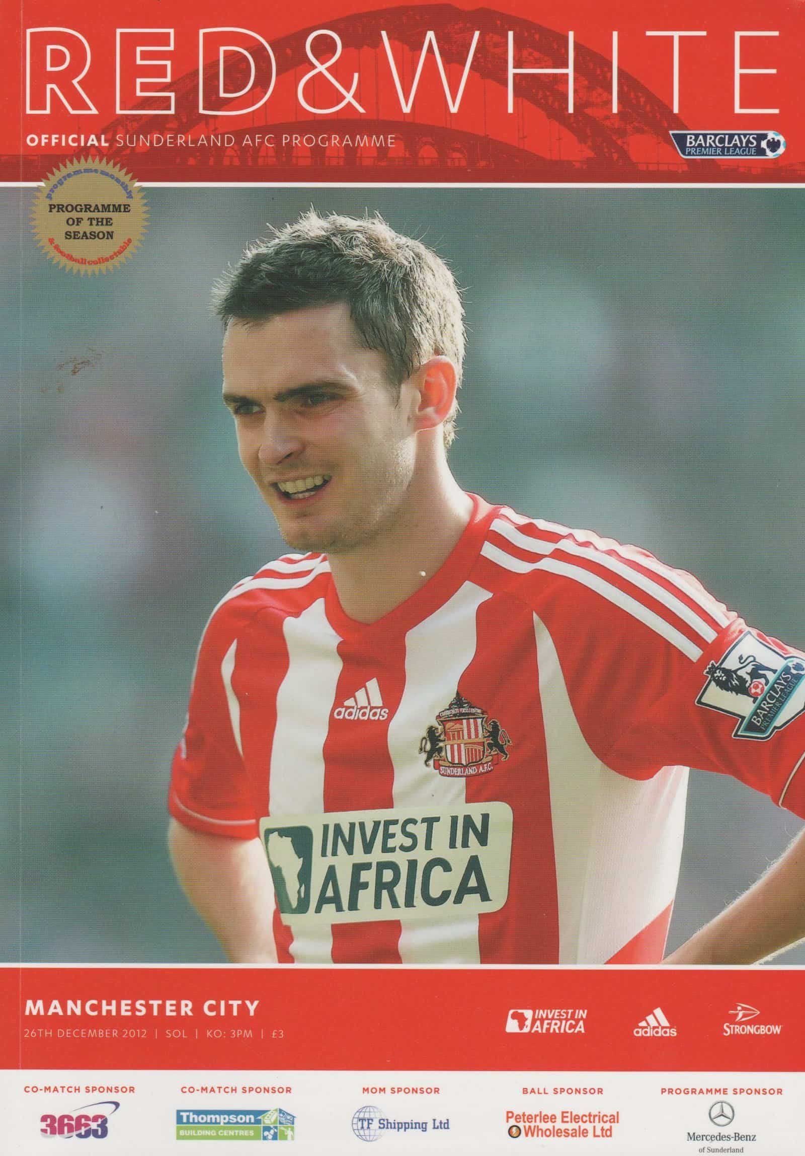 Match: Sunderland v Manchester City Competition: Premier League Date: 26-Dec-2012 Comments: Rating: 5 Condition: Excellent Weight in grams: 260