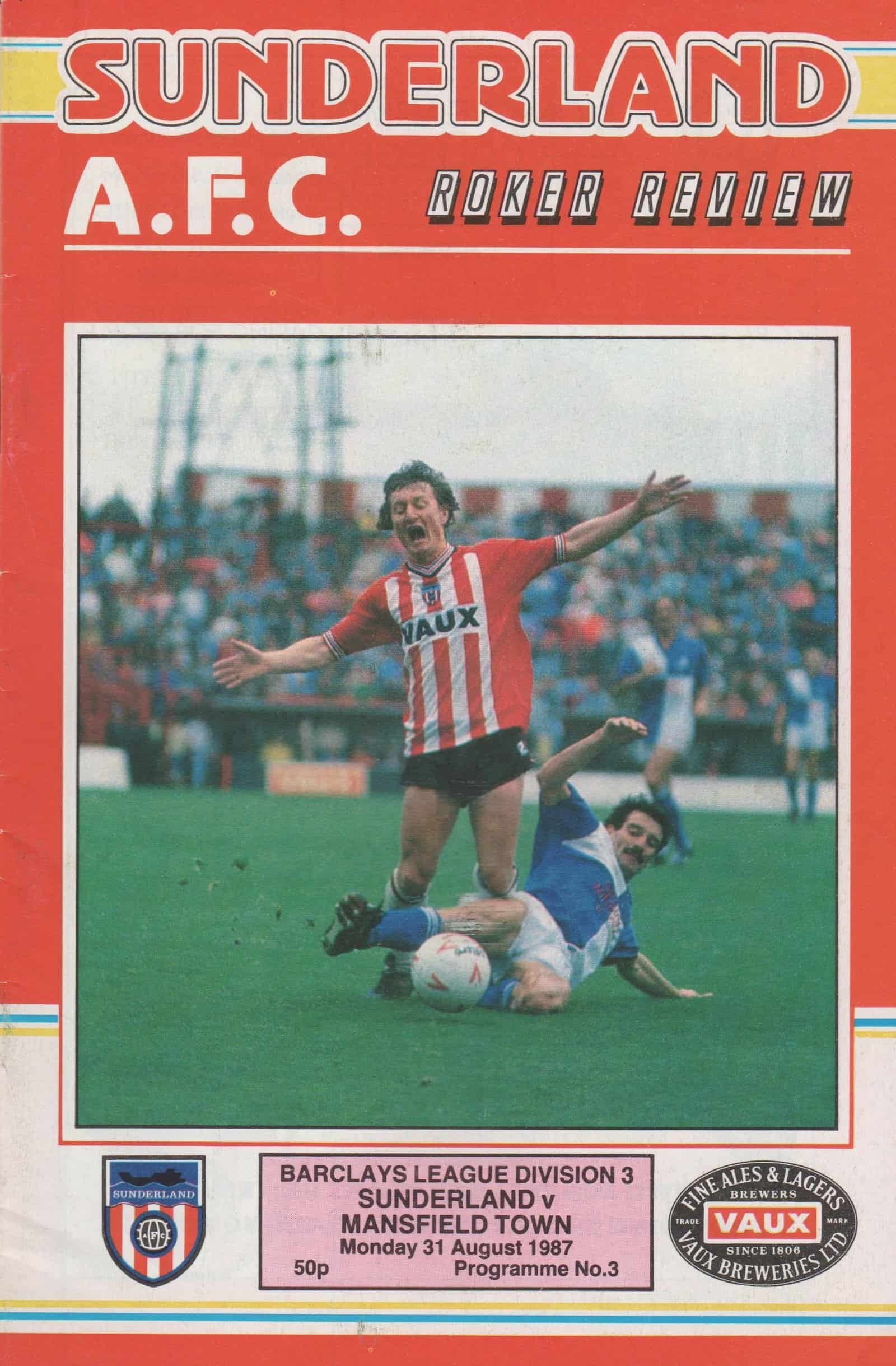 Match: Sunderland v Mansfield Town Competition: League Division 3 Date: 31-Aug-1987 Comments: Rating: 4 Condition: Very good Weight in grams: 100