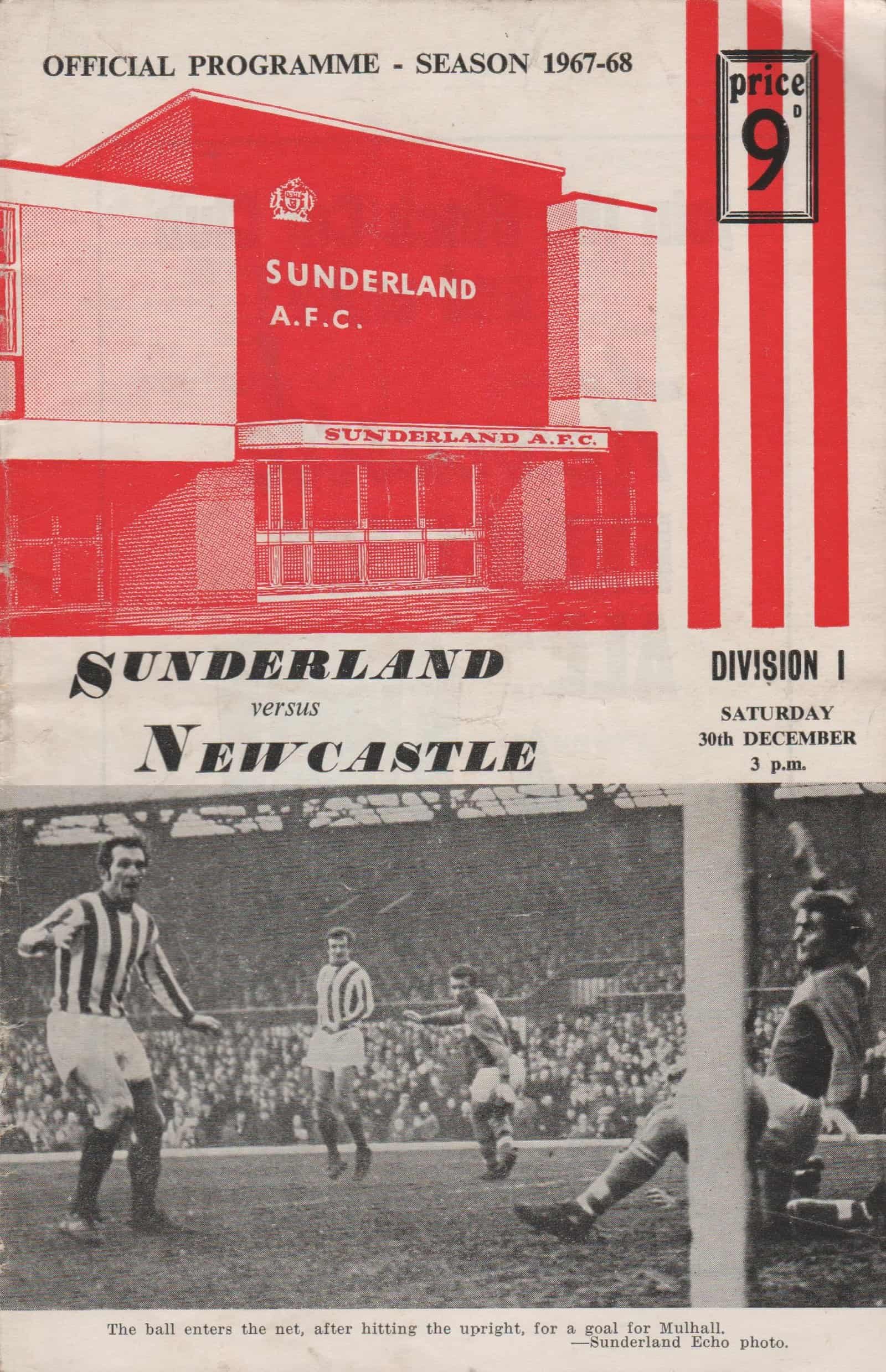 Match: Sunderland v Newcastle United Competition: League Division 1 Date: 30-12-1967 Comments: Rating: 3 Condition: Tear on spine where staple removed, wear on spine Weight in grams: 60