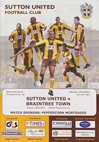 Match: Sutton United v Braintree Town Competition: Nationwide Conference South Date: 24-03-2007 Comments: Rating: 5 Condition: Excellent Weight in grams: 100