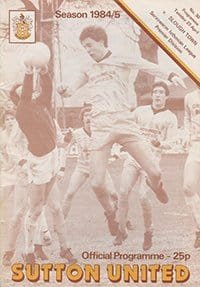 Match: Sutton United v Epsom & Ewell Competition: Servowarm Isthmian League Premier Division Date: 14-12-1985 Comments: Rating: 4 Condition: Very good Weight in grams: 60