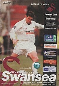 Match: Swansea City v Brentford Competition: League Division 3 Date: 16-02-1999 Comments: Rating: 4 Condition: Very good Weight in grams: 100
