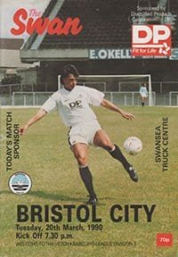 Match: Swansea City v Bristol City Competition: League Division 3 Date: 20-03-1990 Comments: Rating: 4 Condition: Weight in grams: 60