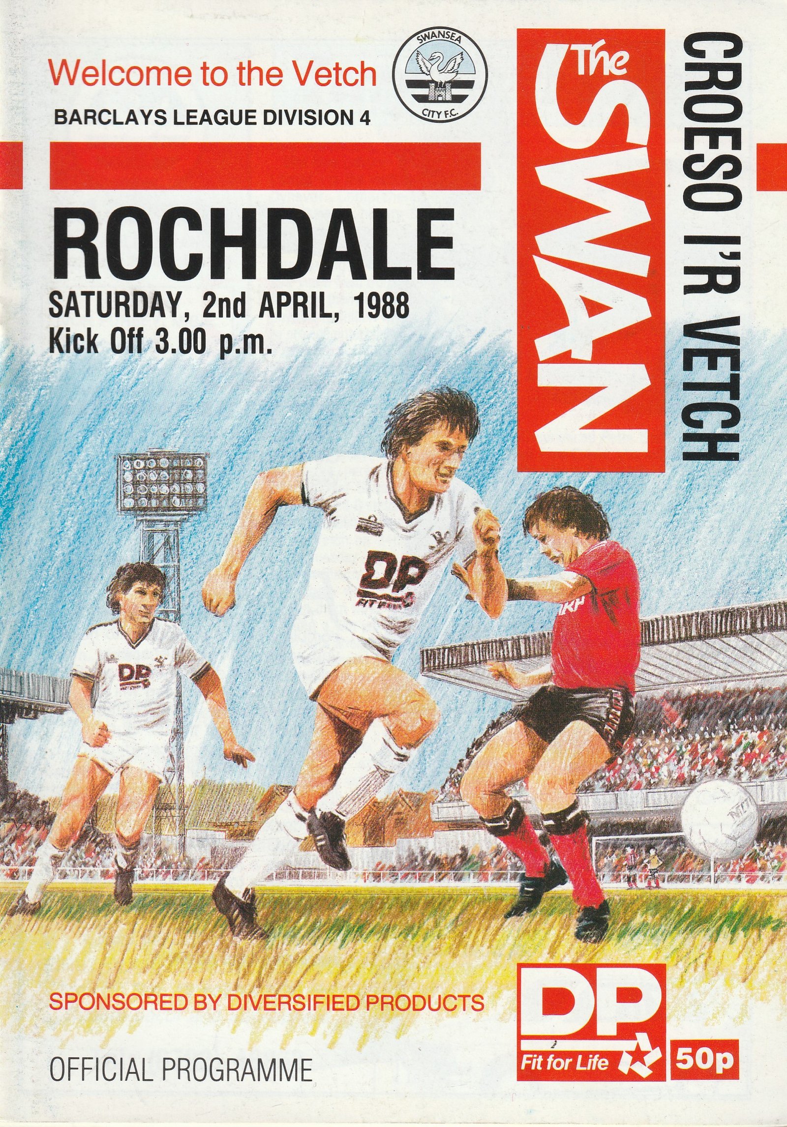 Match: Swansea City v Rochdale Competition: League Division 4 Date: 02-Apr-1988 Comments: Rating: 4 Condition: Very good Weight in grams: 120