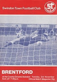 Match: Swindon Town v Brentford Competition: League Division 3 Date: 03-11-1981 Comments: Rating: 4 Condition: Very good Weight in grams: 80