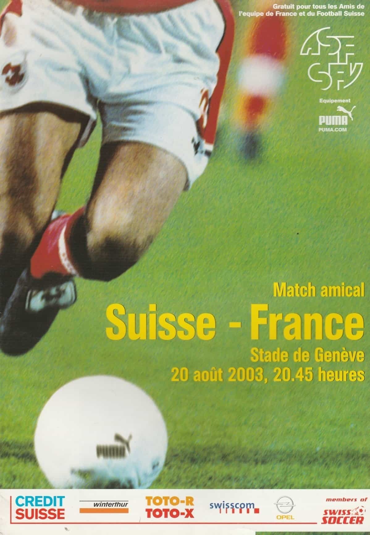 Match: Switzerland v England Competition: International Friendly Date: 20-Aug-2003 Comments: Rating: 4 Condition: Very good Weight in grams: 120
