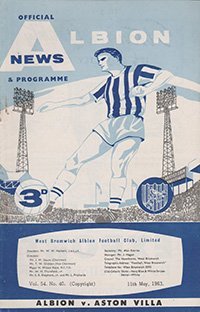 Match: West Bromwich Albion v Aston Villa Competition: League Division 1 Date: 11-05-1963 Comments: Rating: 3 Condition: Rusty staples, half time scores in pencil, faint fold Weight in grams: 40