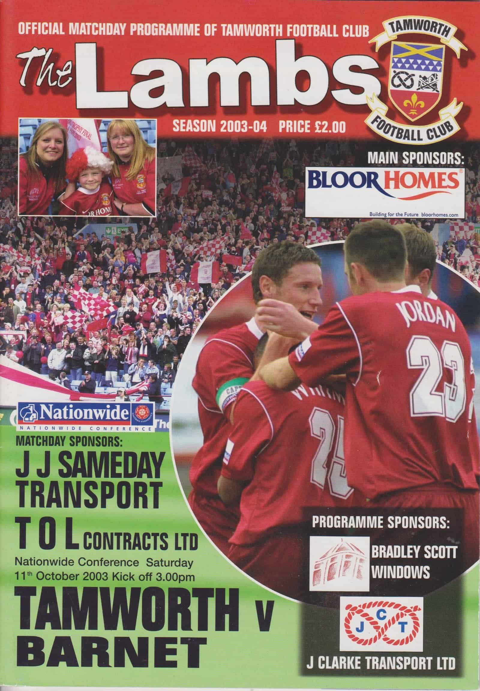 Match: Tamworth v Barnet Competition: Nationwide Conference Date: 11-Oct-2003 Comments: Rating: 4 Condition: Very good Weight in grams: 100