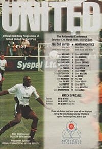 Match: Telford United v Northwich Victoria Competition: Football Conference Date: 13-03-1999 Comments: Rating: 4 Condition: Small corner fold on cover Weight in grams: 140
