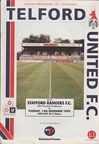 Match: Telford United v Stafford Rangers Competition: GM Vauxhall Conference Date: 14-12-1993 Comments: Rating: 4 Condition: Light crease marks on back Weight in grams: 80