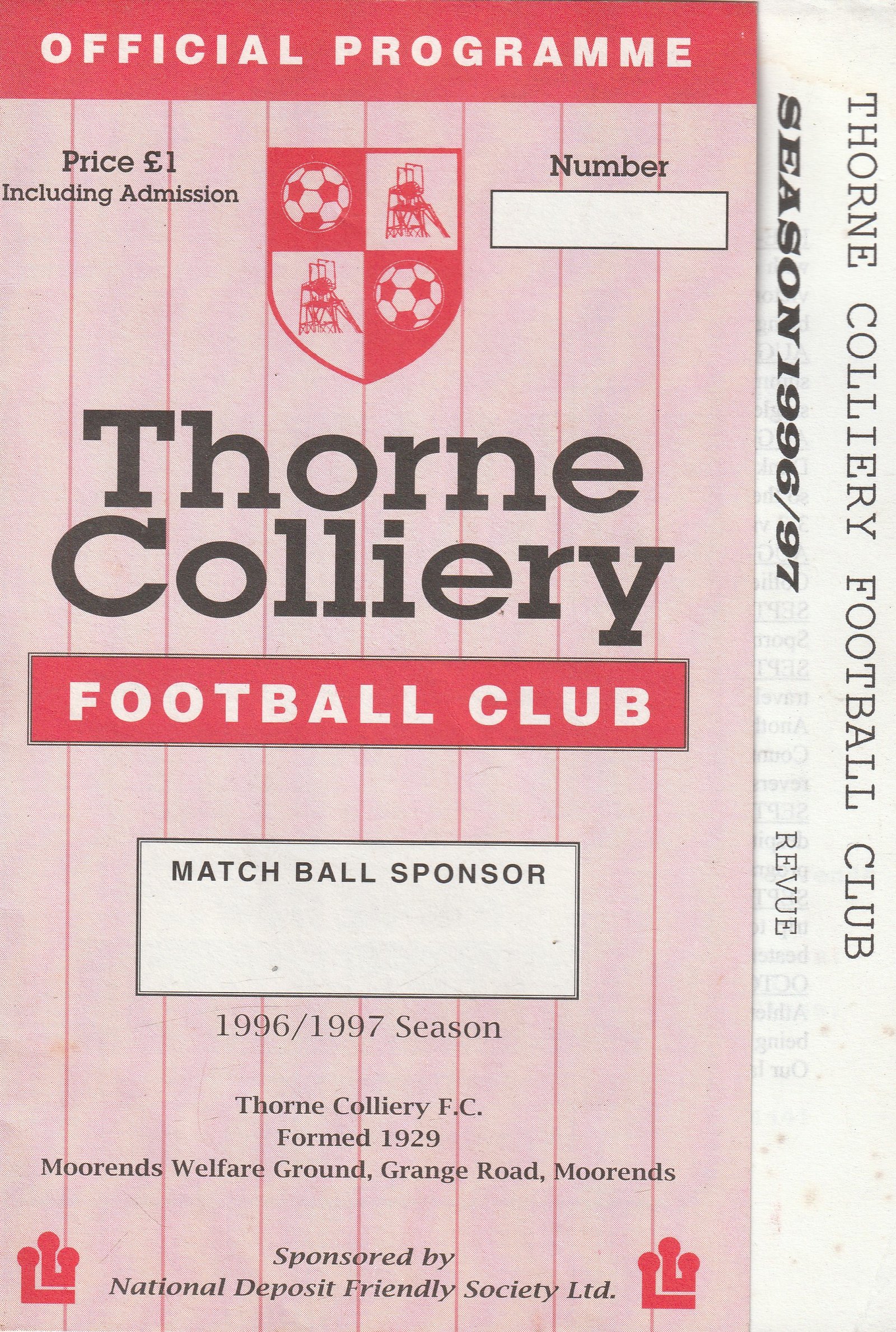 Title: Thorne Colliery Revue 1996-97 Club: Thorne Colliery 1996-97 Year: 1996-97 Comments: Season week by week Rating: 4 Condition: Very good Weight in grams: 120 Pagination: 32 pages