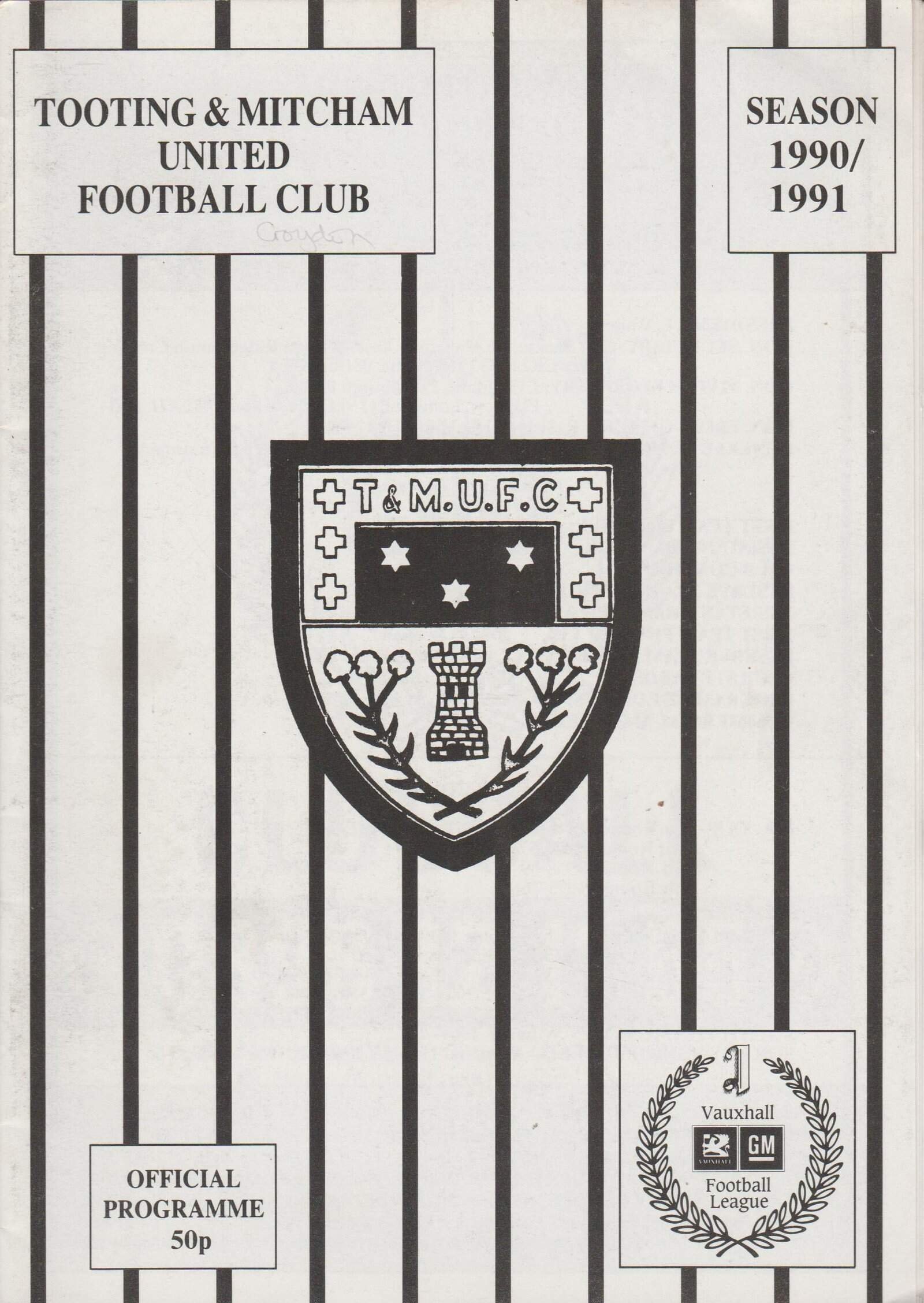 Match: Tooting & Mitcham United v Croydon Competition: Vauxhall League Division 1 Date: 22-12-1990 Comments: Rating: 4 Condition: Very good Weight in grams: 40