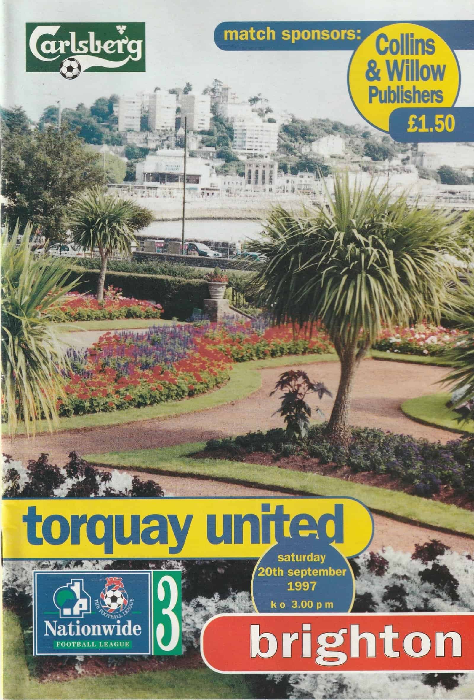 Match: Torquay United v Brighton & Hove Albion Competition: League Division 3 Date: 20-Sep-1997 Comments: Rating: 3 Condition: Team changes, crossword partially completed Weight in grams: 160