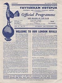 Match: Tottenham Hotspur Reserves v Fulham Reserves Competition: Football Combination Date: 29-11-1958 Comments: Rating: 4 Condition: Fold, team changes Weight in grams: 20