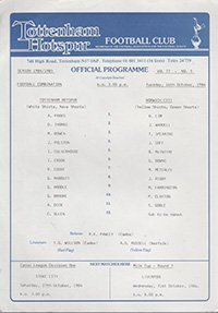 Match: Tottenham Hotspur Reserves v Norwich City Reserves Competition: Football Combination Date: 16-10-1984 Comments: Single sheet Rating: 4 Condition: Very good Weight in grams: 20