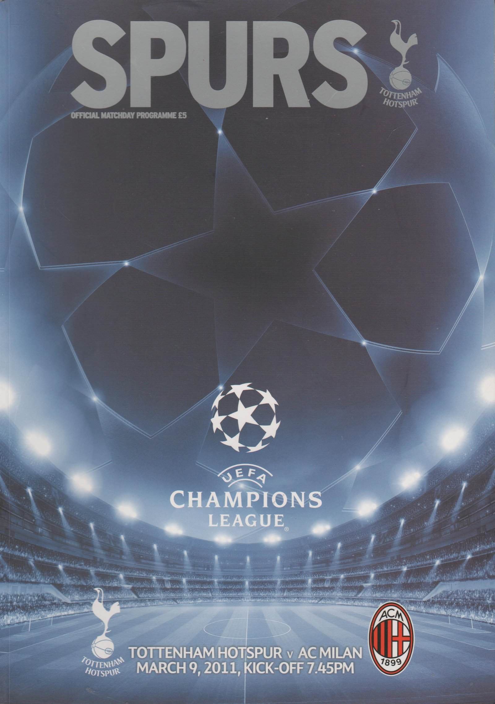 Match: Tottenham Hotspur v AC Milan Competition: Champions League Round of 16 2nd leg Date: 09-Mar-2011 Comments: Rating: 4 Condition: Very good Weight in grams: 600