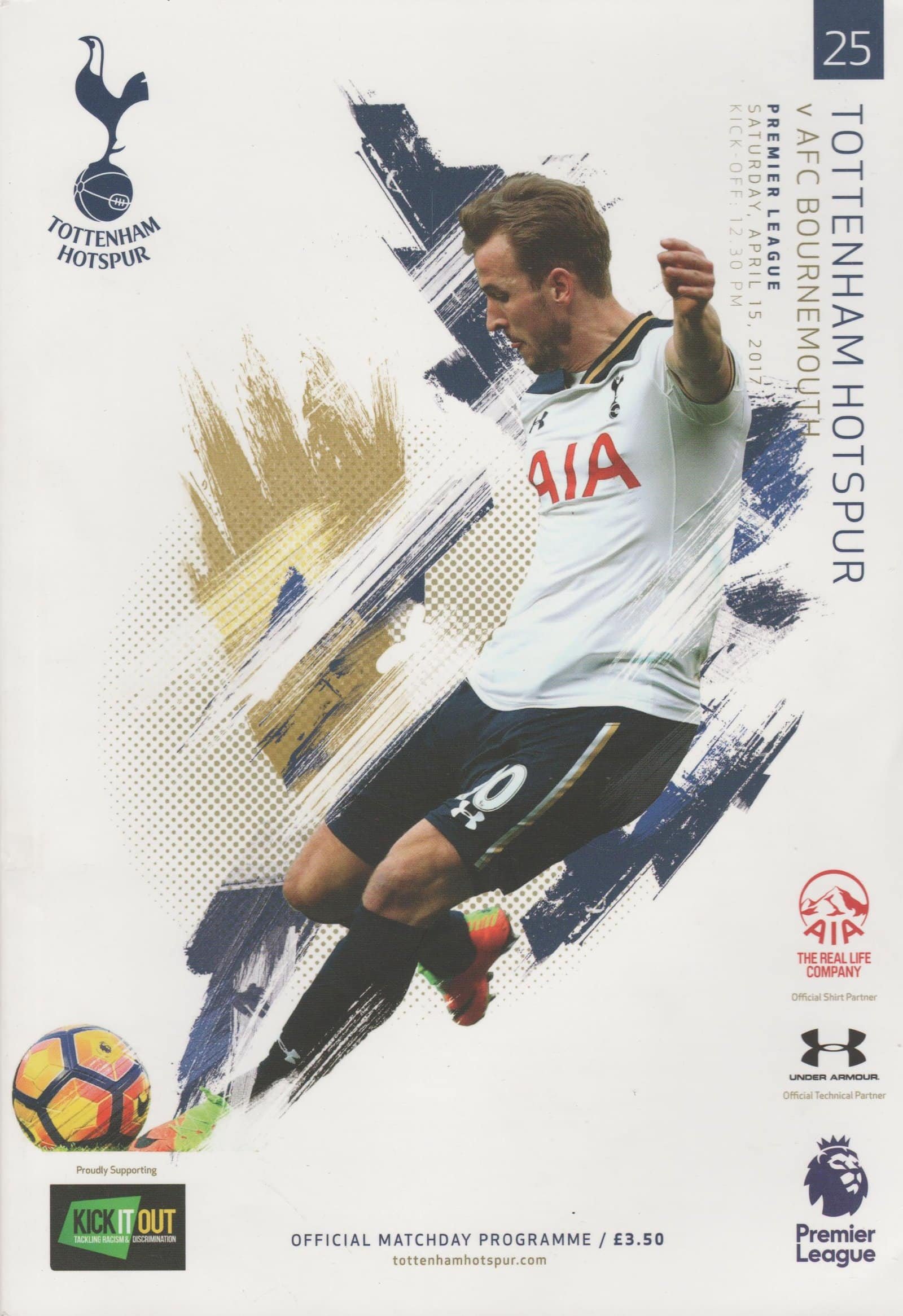 Match: Tottenham Hotspur v AFC Bournemouth Competition: Premier League Date: 15-Apr-2017 Comments: Rating: 5 Condition: Excellent Weight in grams: 300