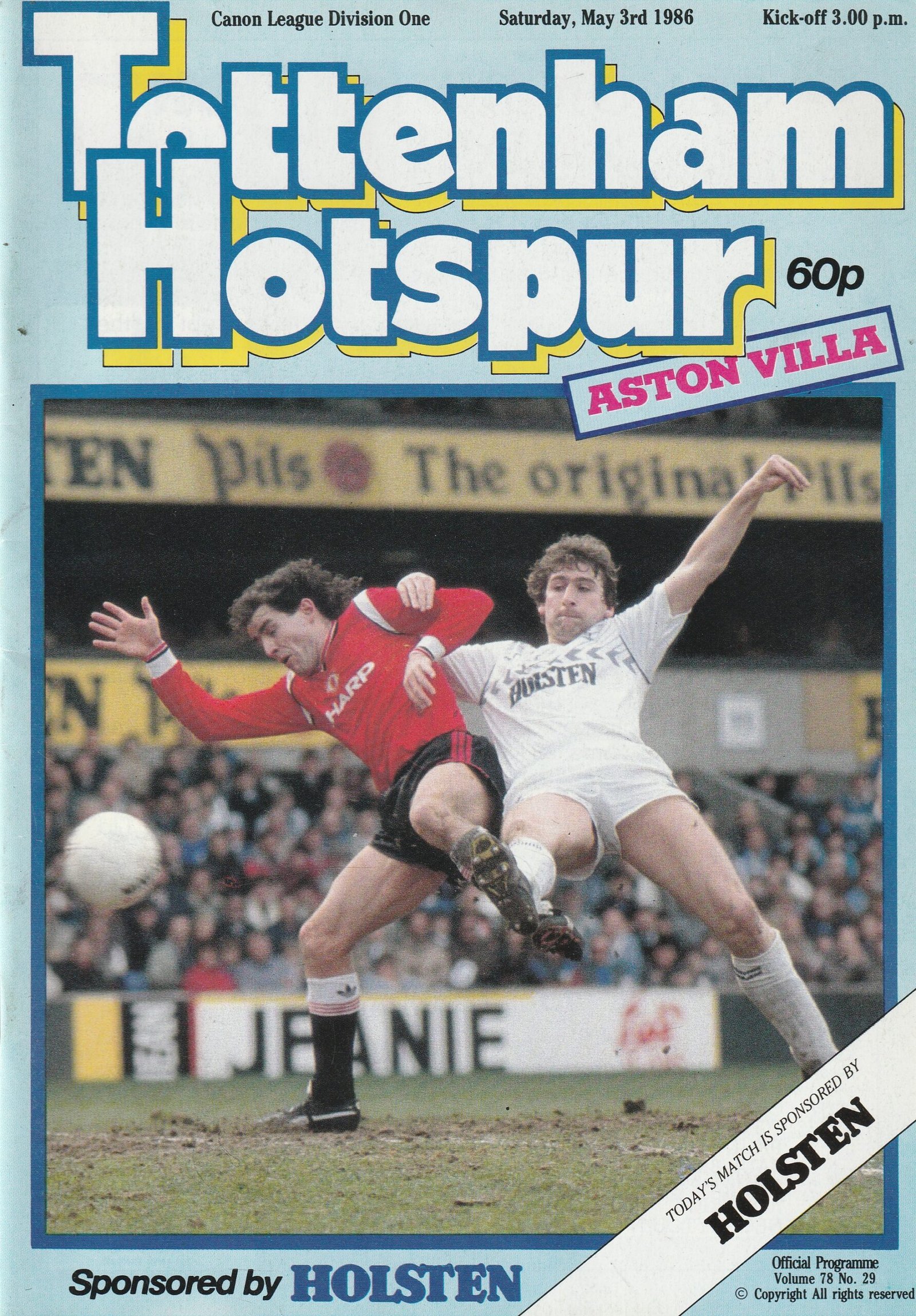 Match: Tottenham Hotspur v Aston Villa Competition: League Division One Date: 03-May-1986 Comments: Rating: 4 Condition: Very good Weight in grams: 80