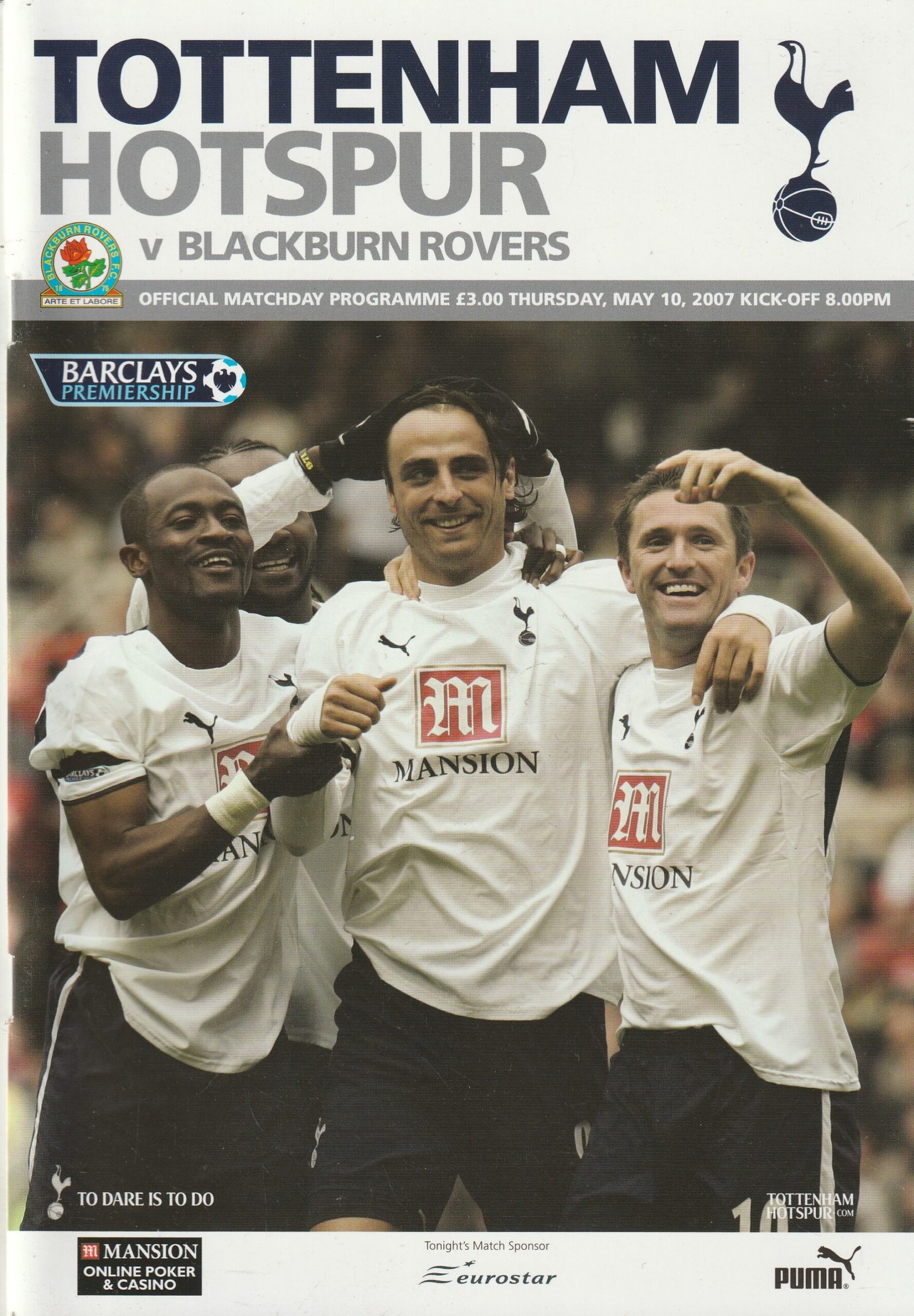 Match: Tottenham Hotspur v Blackburn Rovers Competition: Barclays Premiership Date: 10-May-2007 Comments: Rating: 4 Condition: Very good Weight in grams: 200