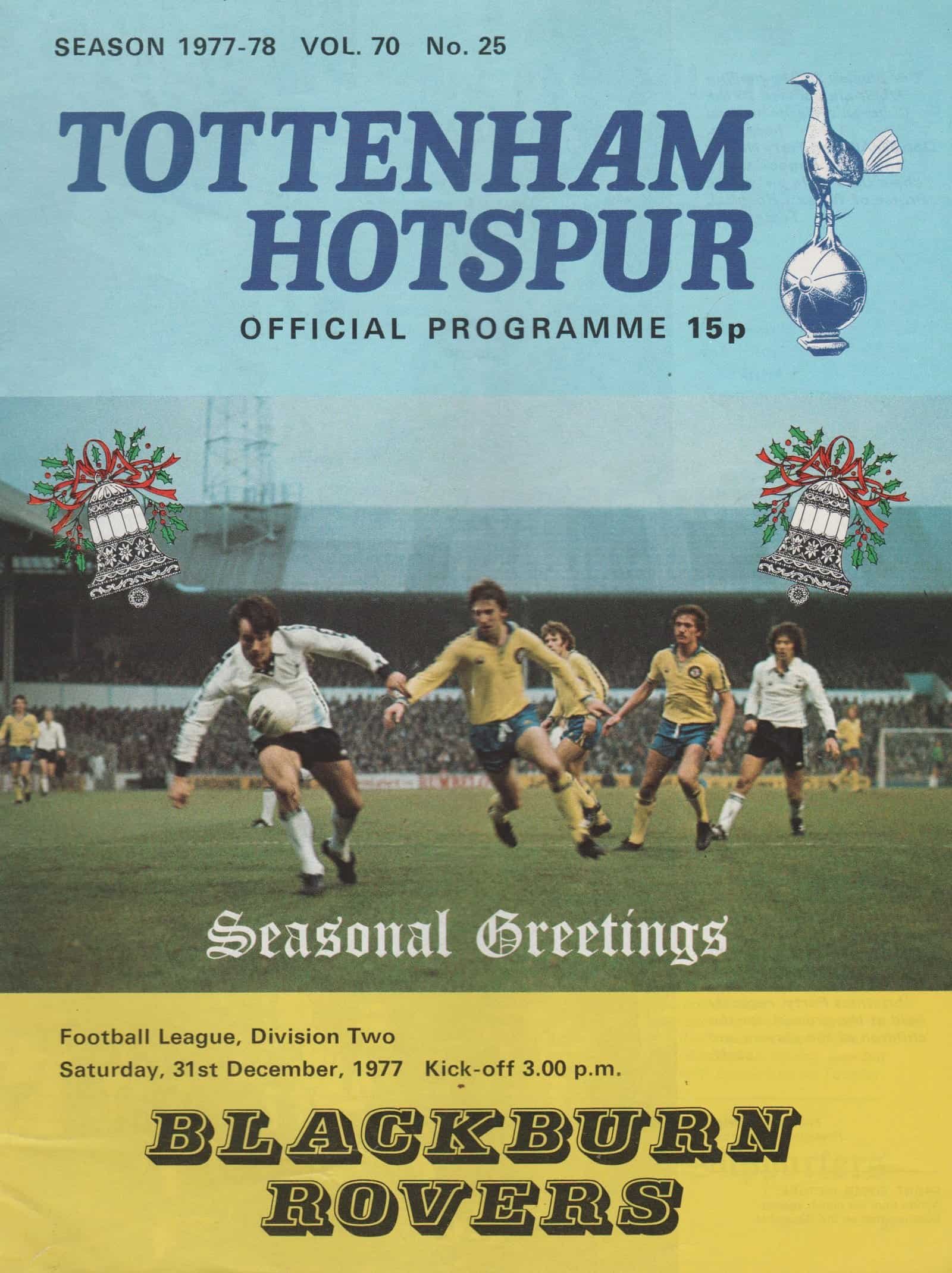 Match: Tottenham Hotspur v Blackpool Competition: League Division 2 Date: 31-Dec-1977 Comments: Rating: 3 Condition: Slight fold Weight in grams: 40