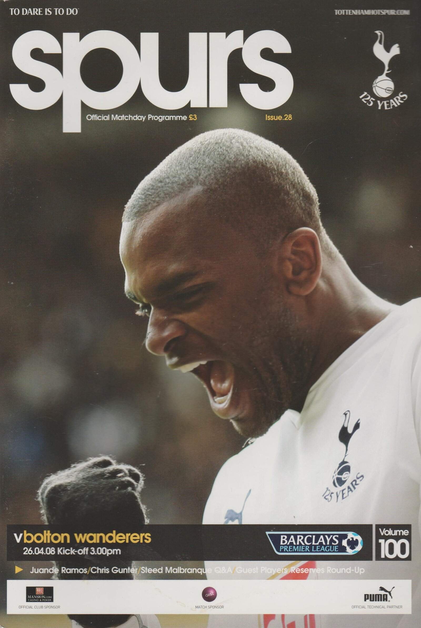 Match: Tottenham Hotspur v Bolton Wanderers Competition: Premier League Date: 26-Apr-2008 Comments: Rating: 4 Condition: Very good Weight in grams: 180