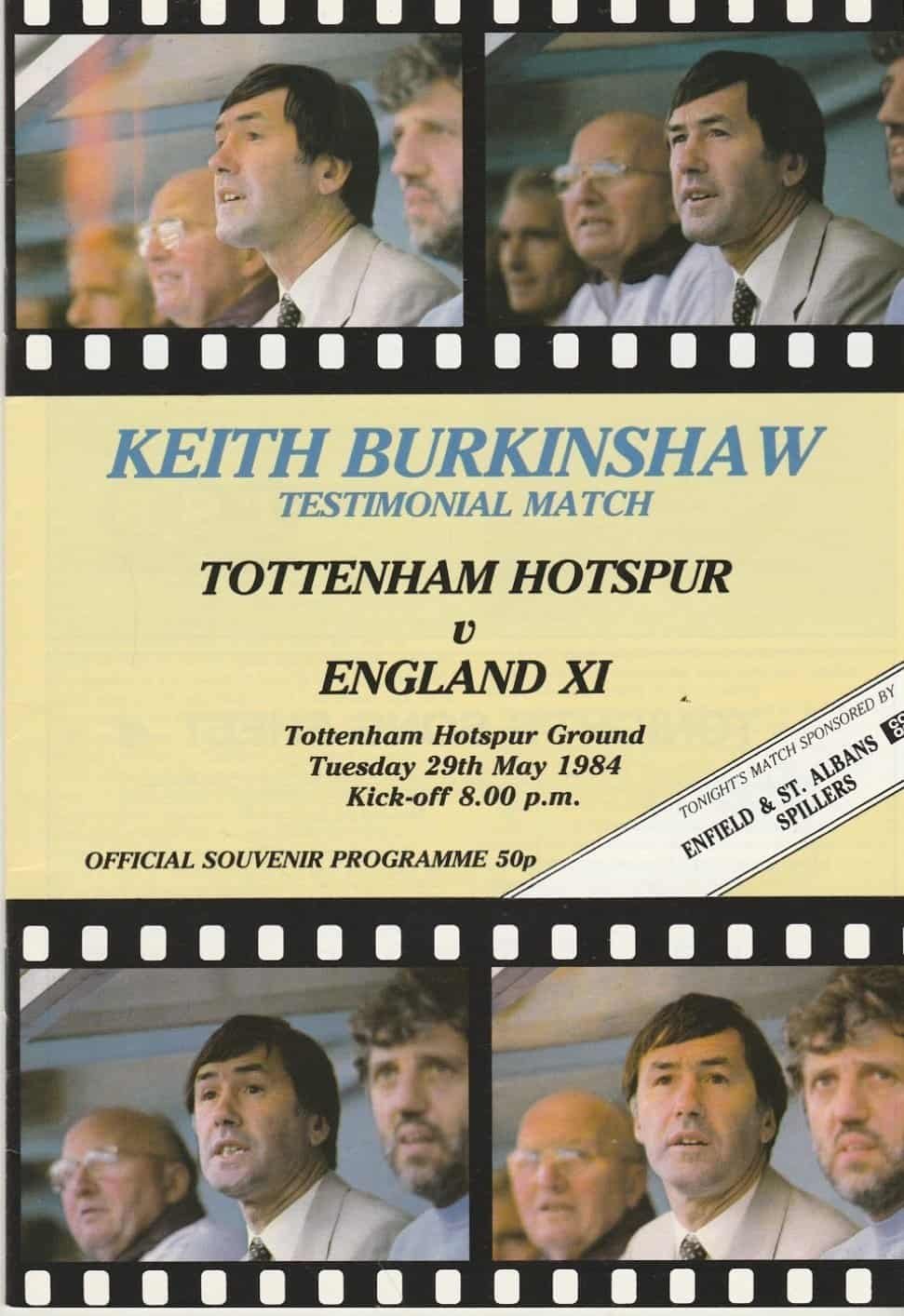 Match: Tottenham Hotspur v England XI Competition: Friendly Date: 29-May-1984 Comments: Keith Burkinshaw Testimonial Match Rating: 4 Condition: Very good Weight in grams: 100
