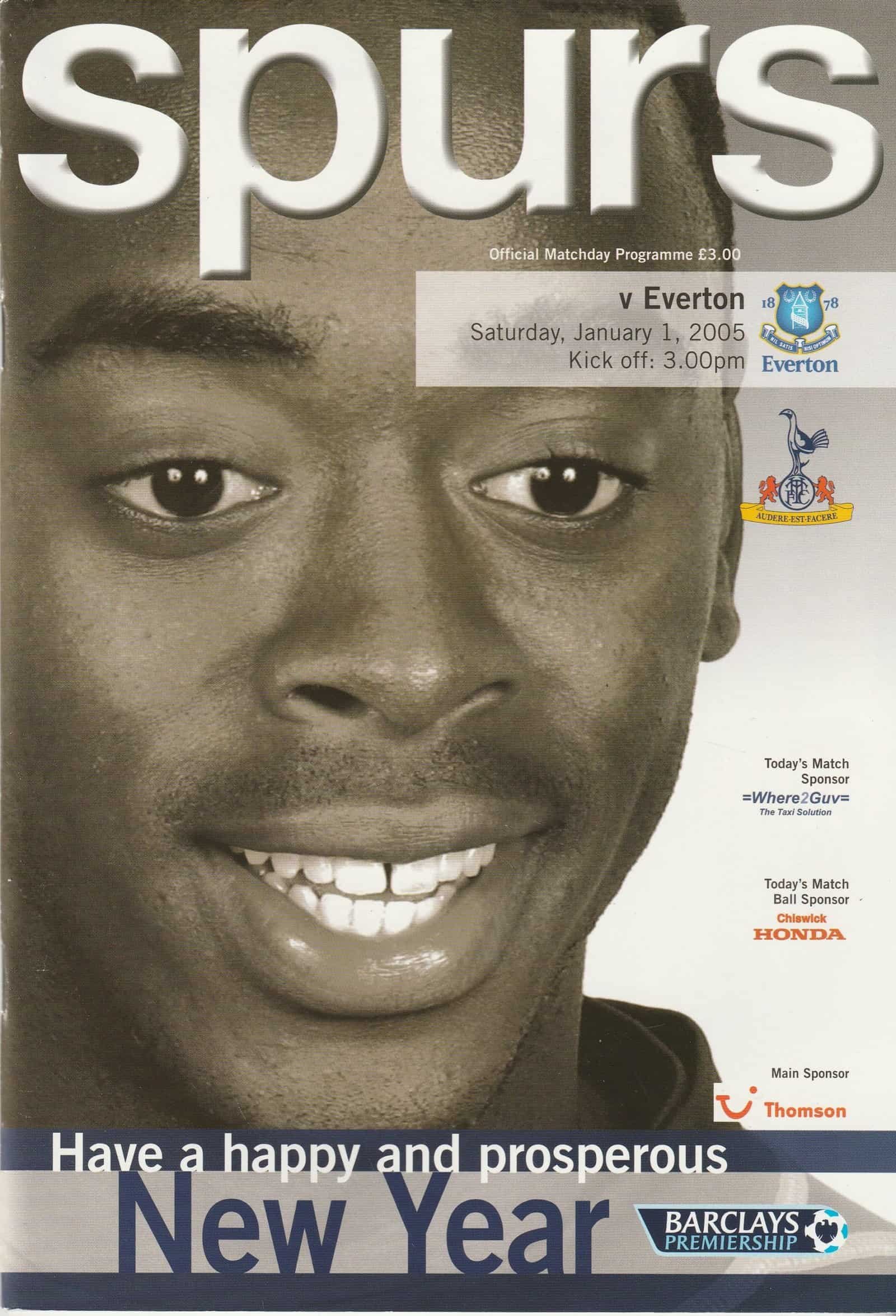 Match: Tottenham Hotspur v Everton Competition: Premier League Date: 01-Jan-2005 Comments: Rating: 4 Condition: Very good Weight in grams: 200