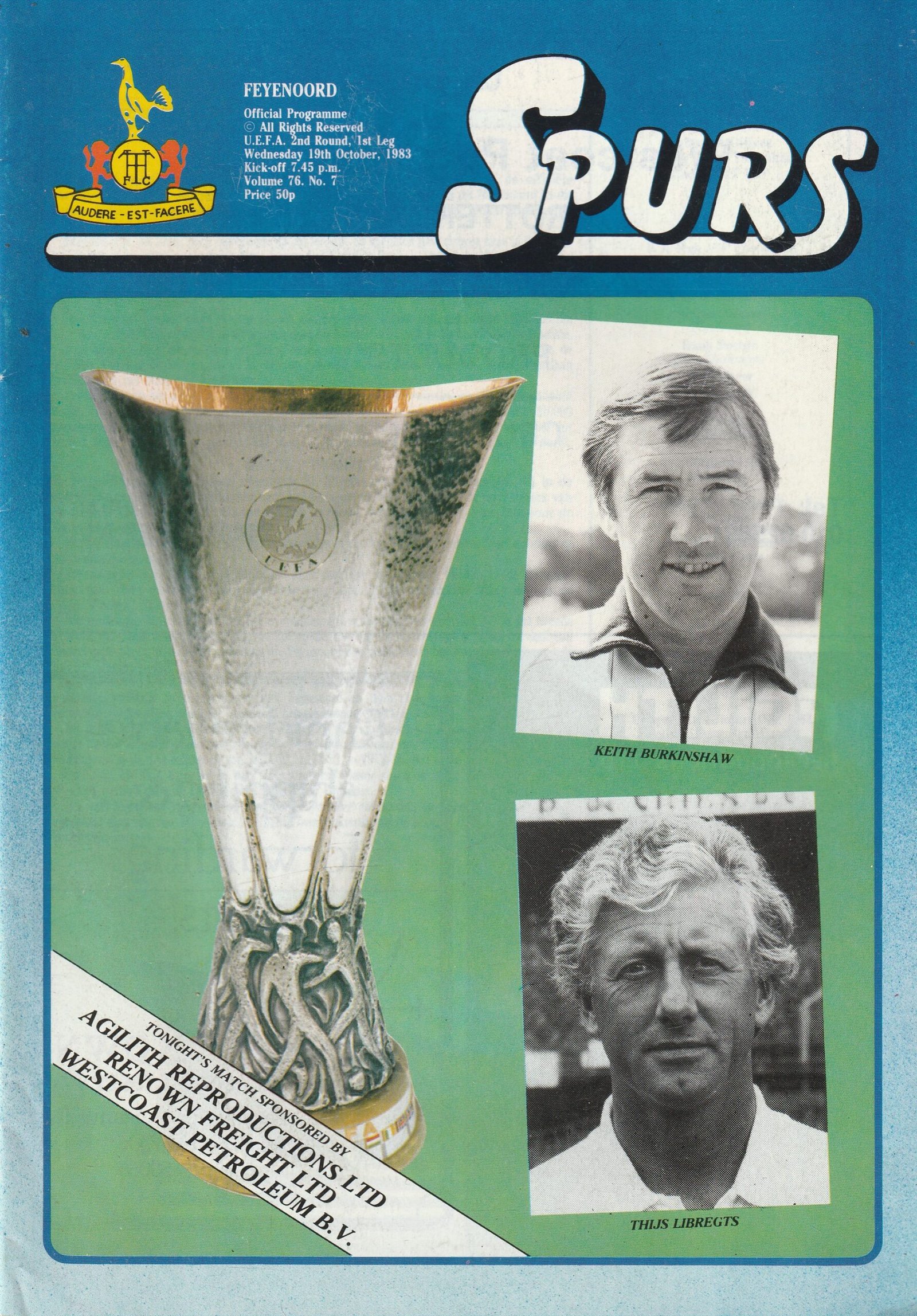 Match: Tottenham Hotspur v Feyenoord Competition: UEFA Cup 2nd Round 1st leg Date: 19-Oct-1983 Comments: Rating: 4 Condition: Very good Weight in grams: 100
