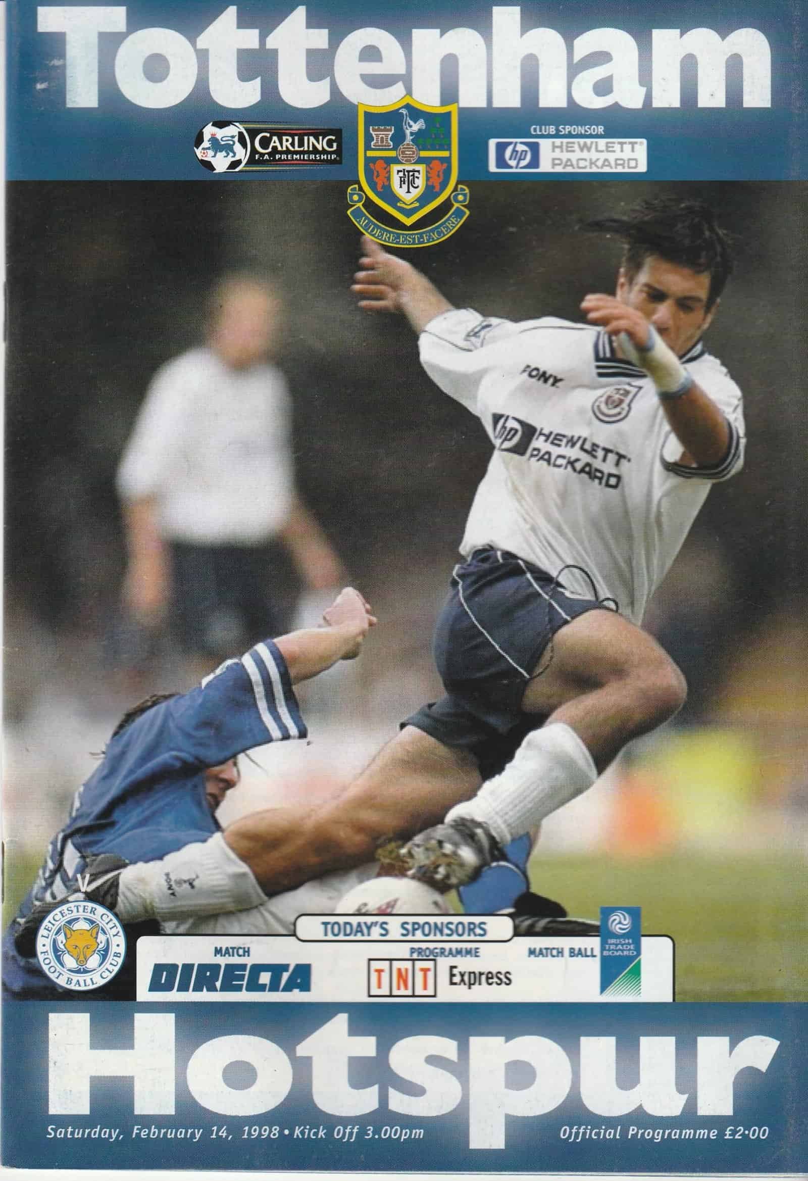 Match: Tottenham Hotspur v Leicester City Competition: Premier League Date: 14-Feb-1998 Comments: Rating: 4 Condition: Very good Weight in grams: 160