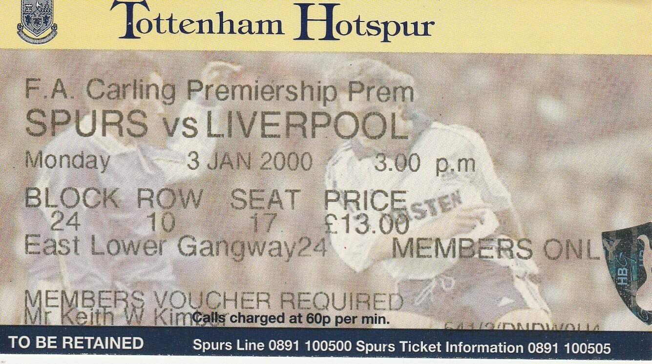 Match: Tottenham Hotspur v Liverpool Competition: Premier League Date: 03-Jan-2000 Comments: Rating: 4 Condition: Very good Weight in grams: 10