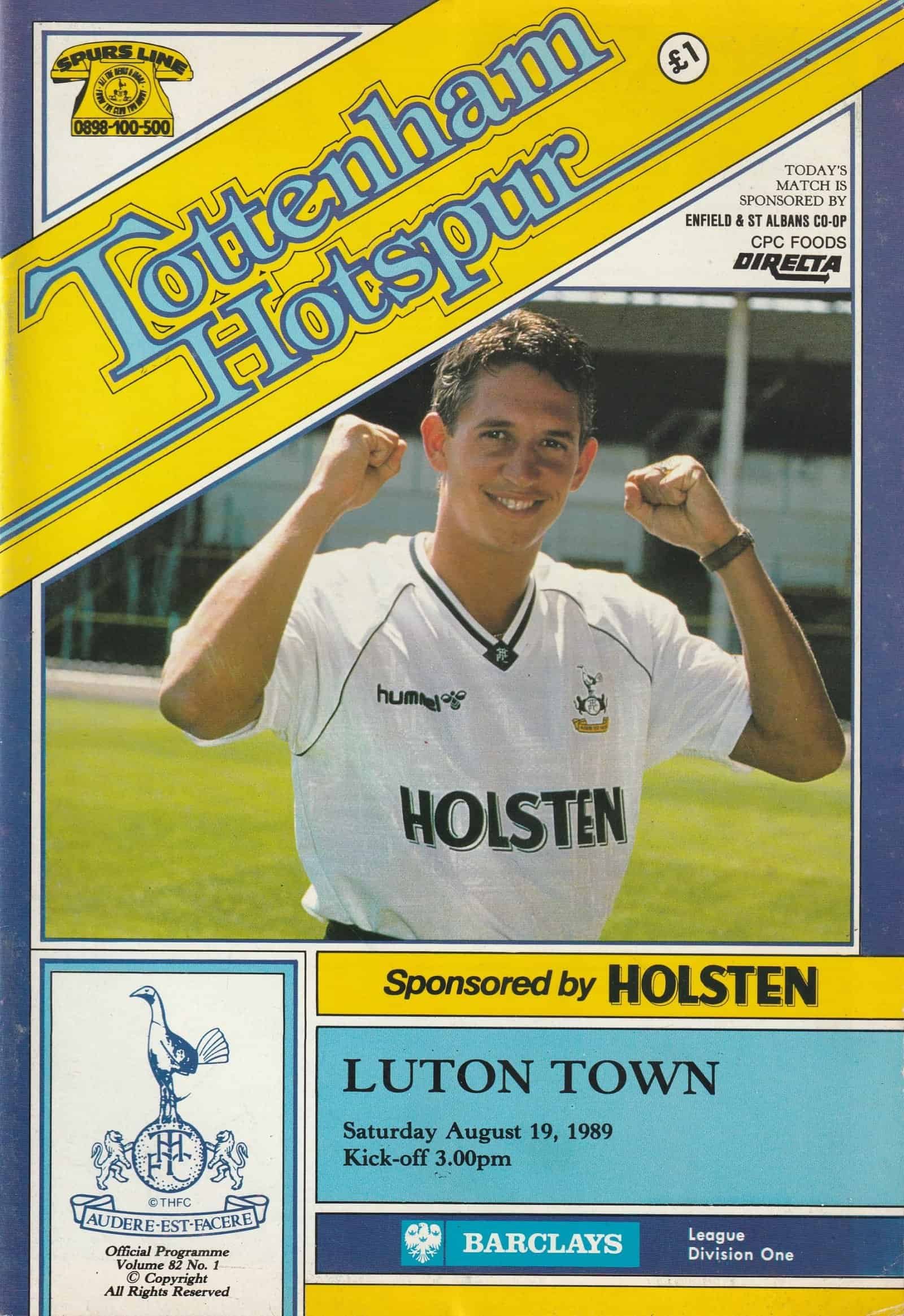Match: Tottenham Hotspur v Luton Town Competition: League Division 1 Date: 19-Aug-1989 Comments: Rating: 3 Condition: Team changes Weight in grams: 160