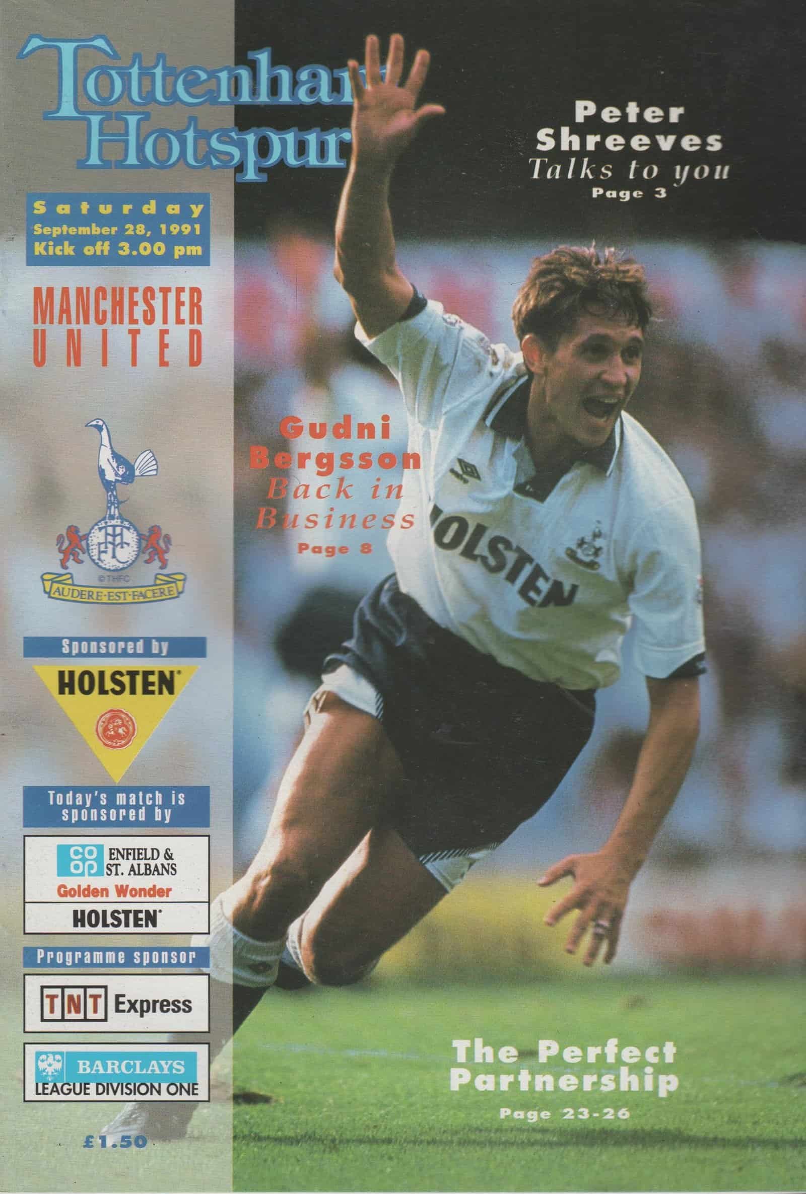 Match: Tottenham Hotspur v Manchester United Competition: League Division 1 Date: 28-Sep-1991 Comments: Rating: 4 Condition: Very good Weight in grams: 120