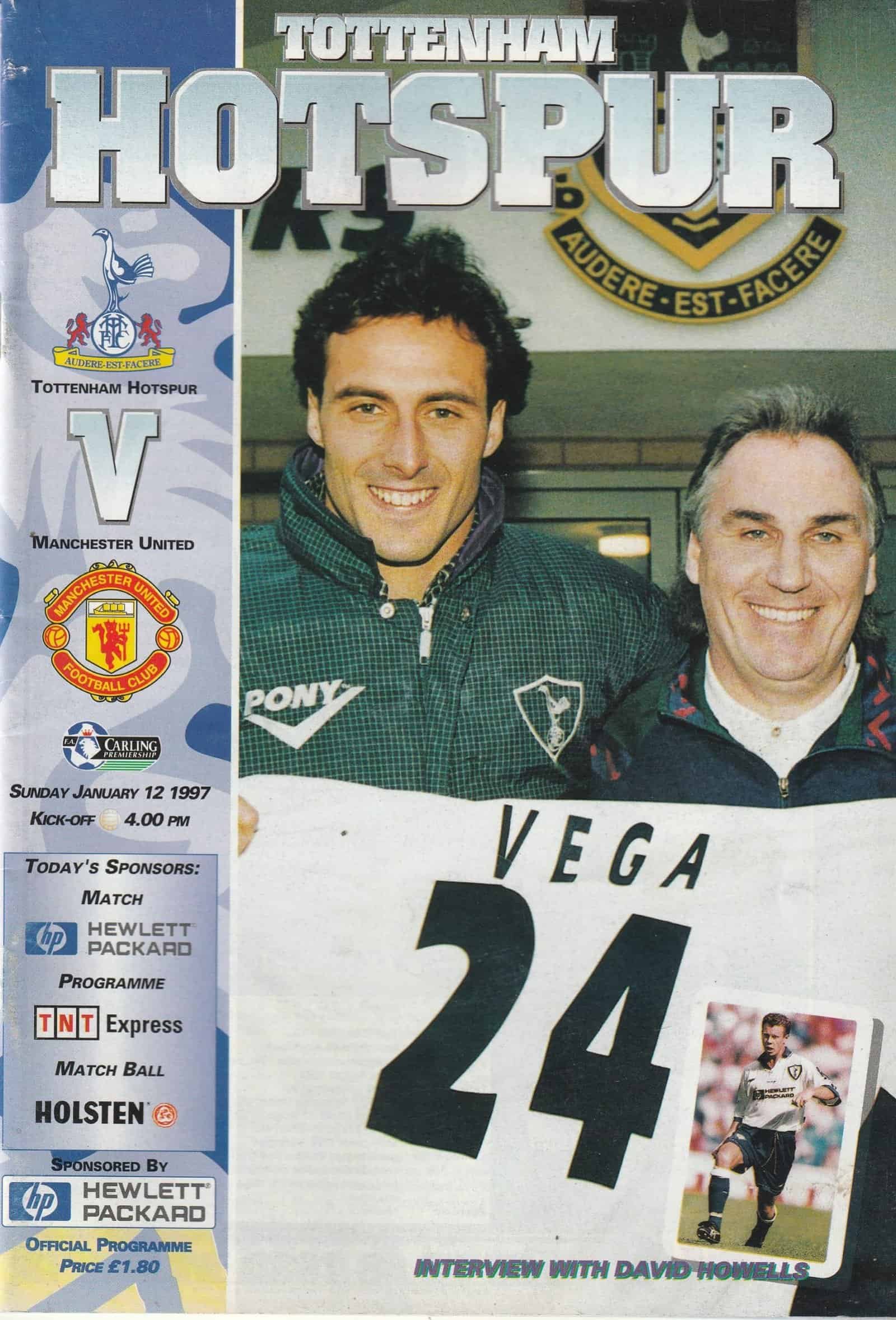 Match: Tottenham Hotspur v Manchester United Competition: Carling Premiership Date: 12-Jan-1997 Comments: Rating: 4 Condition: Very good Weight in grams: 120