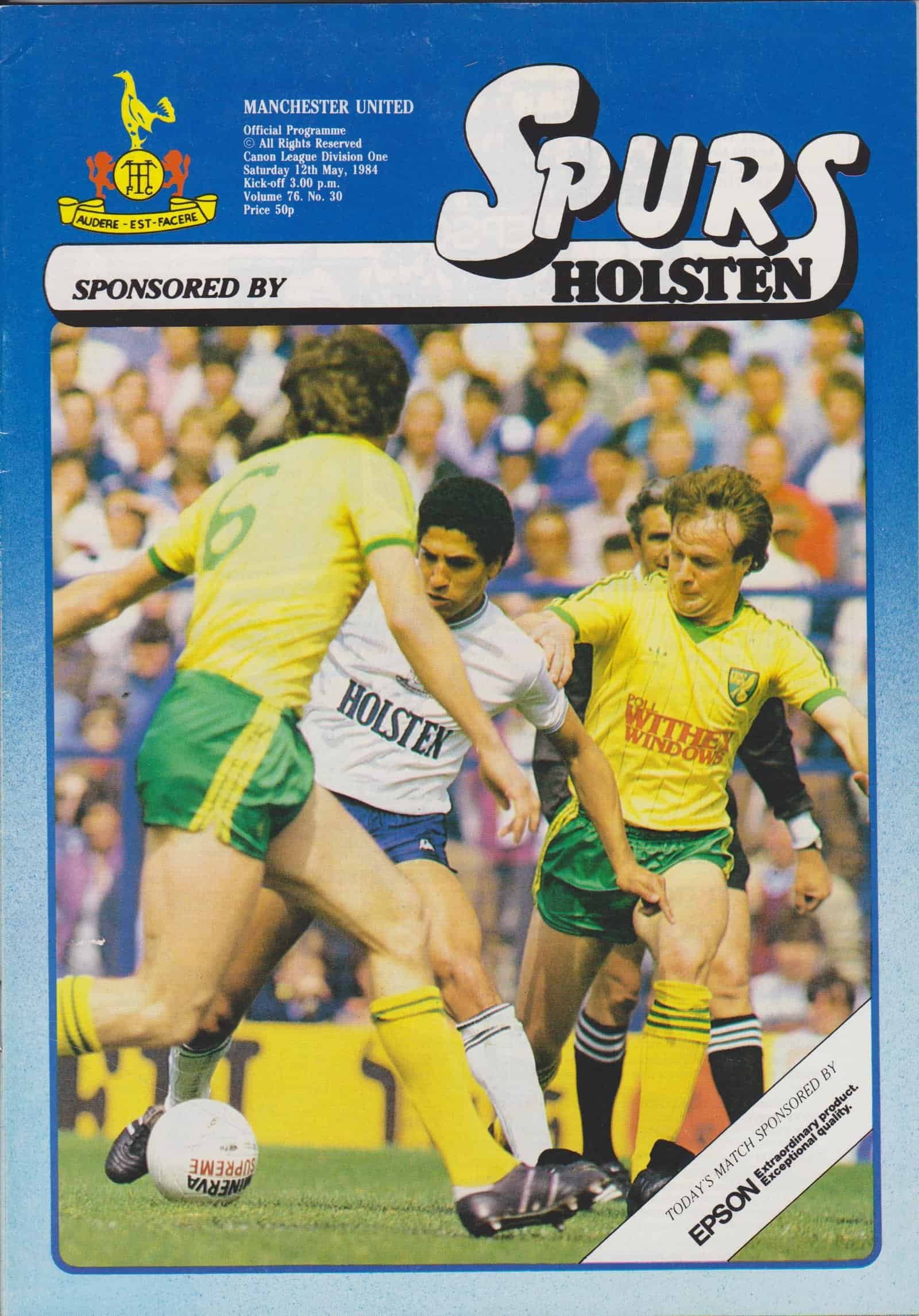 Match: Tottenham Hotspur v Manchester United Competition: League Division 1 Date: 12-May-1984 Comments: Rating: 4 Condition: Good Weight in grams: 100