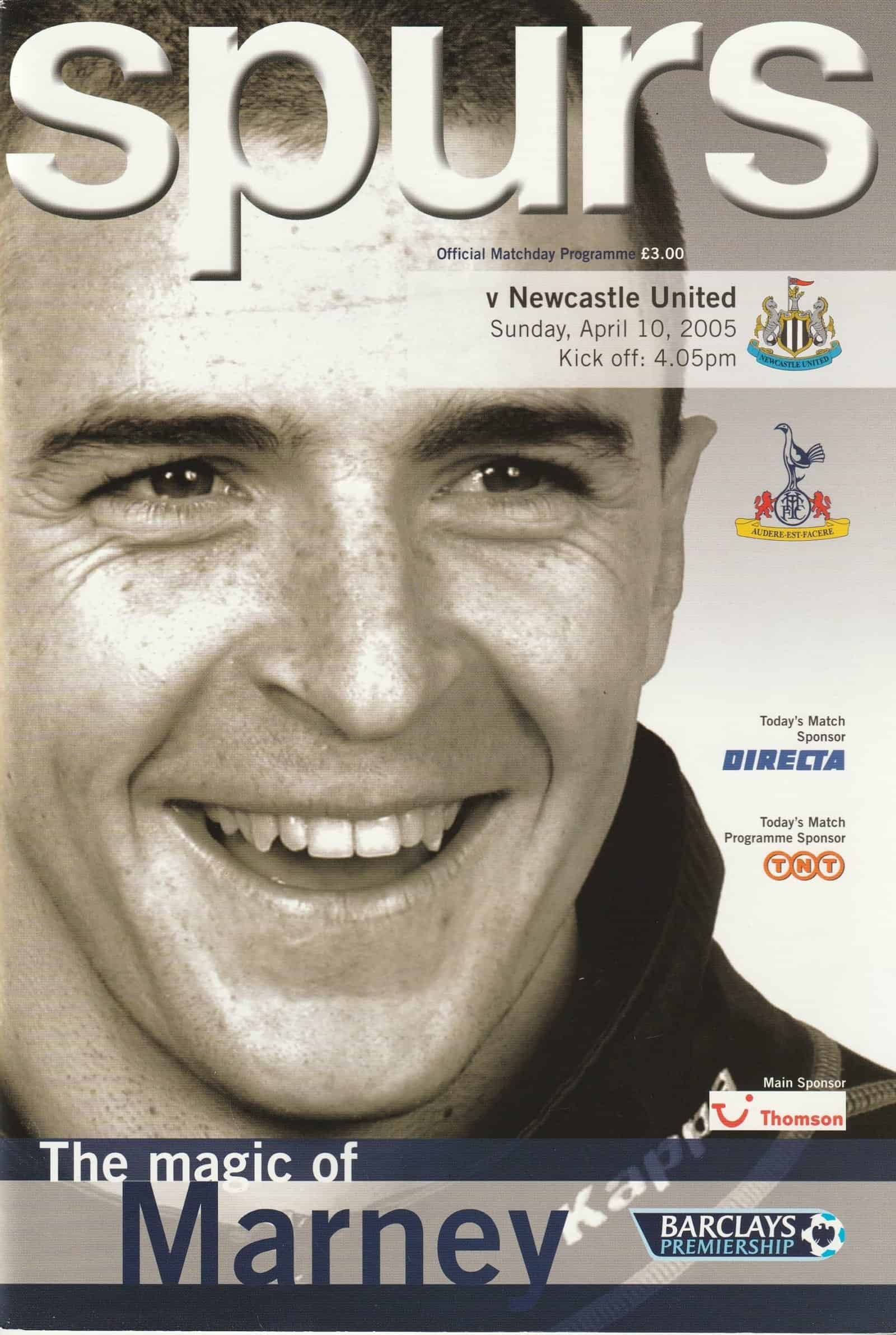 Match: Tottenham Hotspur v Newcastle United Competition: Premier League Date: 10-Apr-2005 Comments: Rating: 4 Condition: Very good Weight in grams: 200