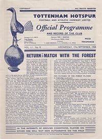 Match: Tottenham Hotspur v Nottingham Forest Competition: League Division One Date: 17-09-1958 Comments: Rating: 3 Condition: Faint fold Weight in grams: 40