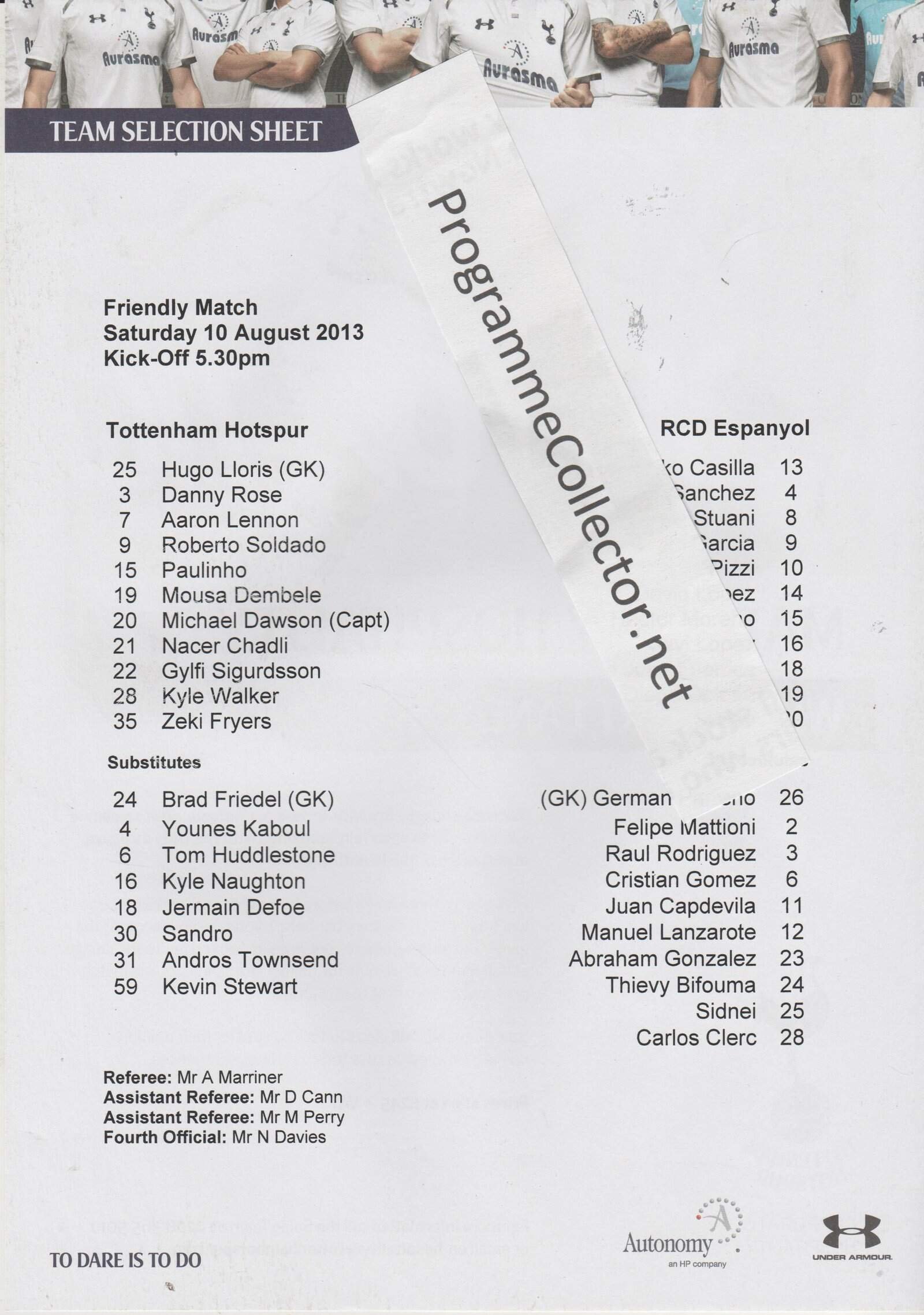 Match: Tottenham Hotspur v RCD Espanyol Competition: Friendly Date: 10-08-2013 Comments: Rating: 4 Condition: Very good Weight in grams: 20