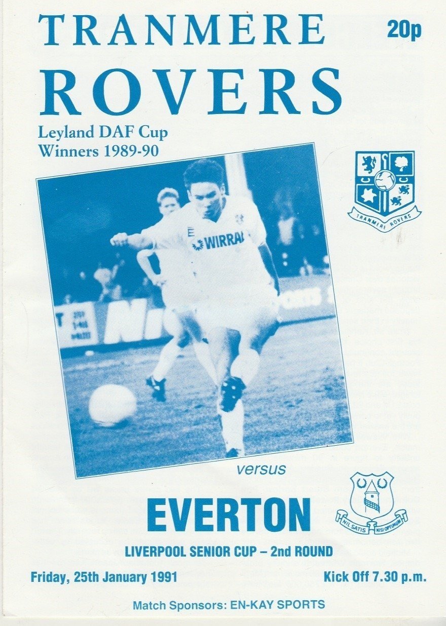 Match: Tranmere Rovers v Everton Competition: Liverpool Senior Cup 2nd Round Date: 25-Jan-1991 Comments: 4 page issue Rating: 4 Condition: Faint fold Weight in grams: 40