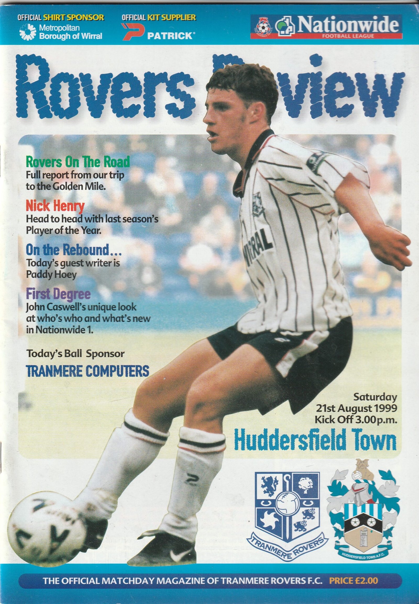 Match: Tranmere Rovers v Huddersfield Town Competition: League Division 1 Date: 21-Aug-1999 Comments: Rating: 4 Condition: Very good Weight in grams: 140