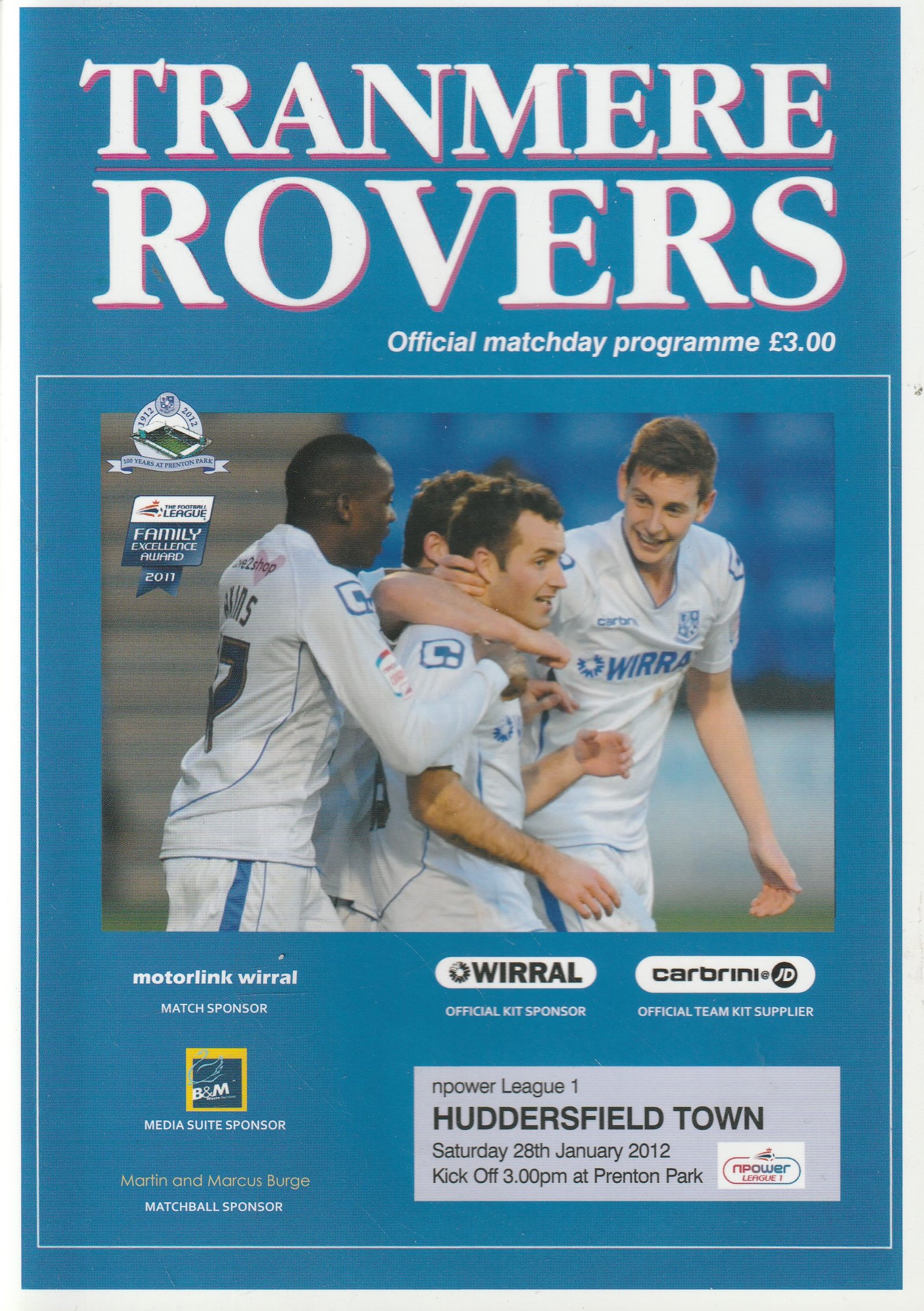 Match: Tranmere Rovers v Huddersfield Town Competition: League 1 Date: 28-Jan-2012 Comments: Rating: 5 Condition: Excellent Weight in grams: 200