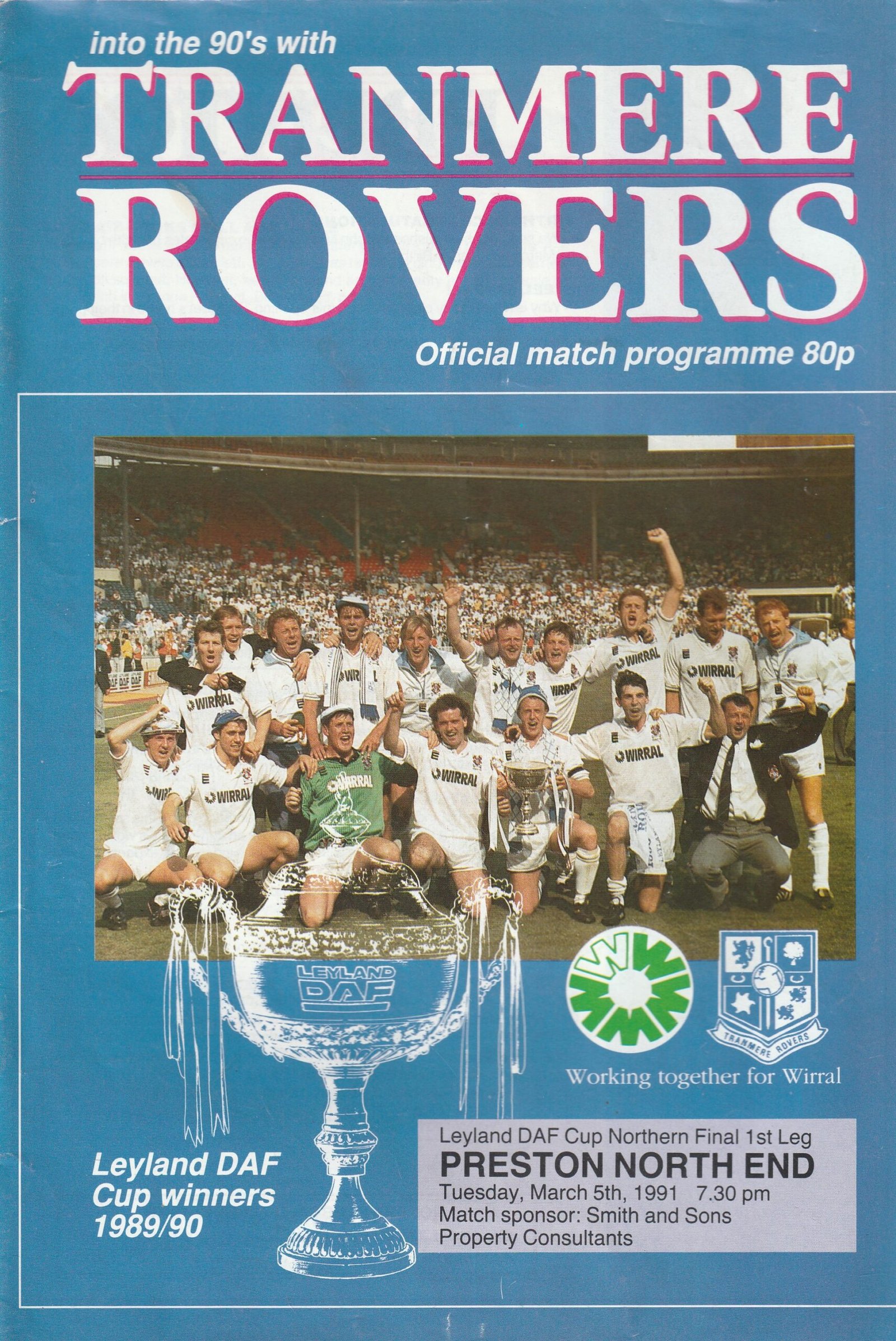 Match: Tranmere Rovers v Preston North End Competition: Leyland Daf Cup Northern Final 1st leg Date: 05-Mar-1991 Comments: Rating: 4 Condition: Very good Weight in grams: 120