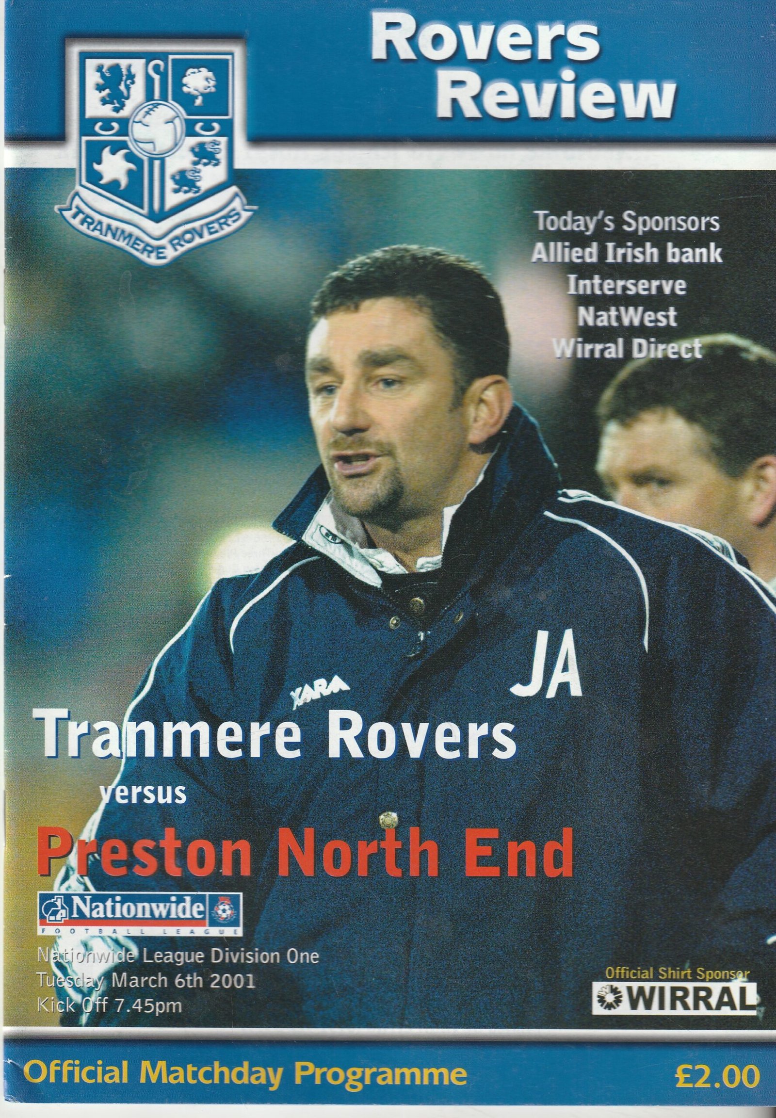 Match: Tranmere Rovers v Preston North End Competition: League Division 1 Date: 06-Mar-2001 Comments: Rating: 4 Condition: Very good Weight in grams: 200