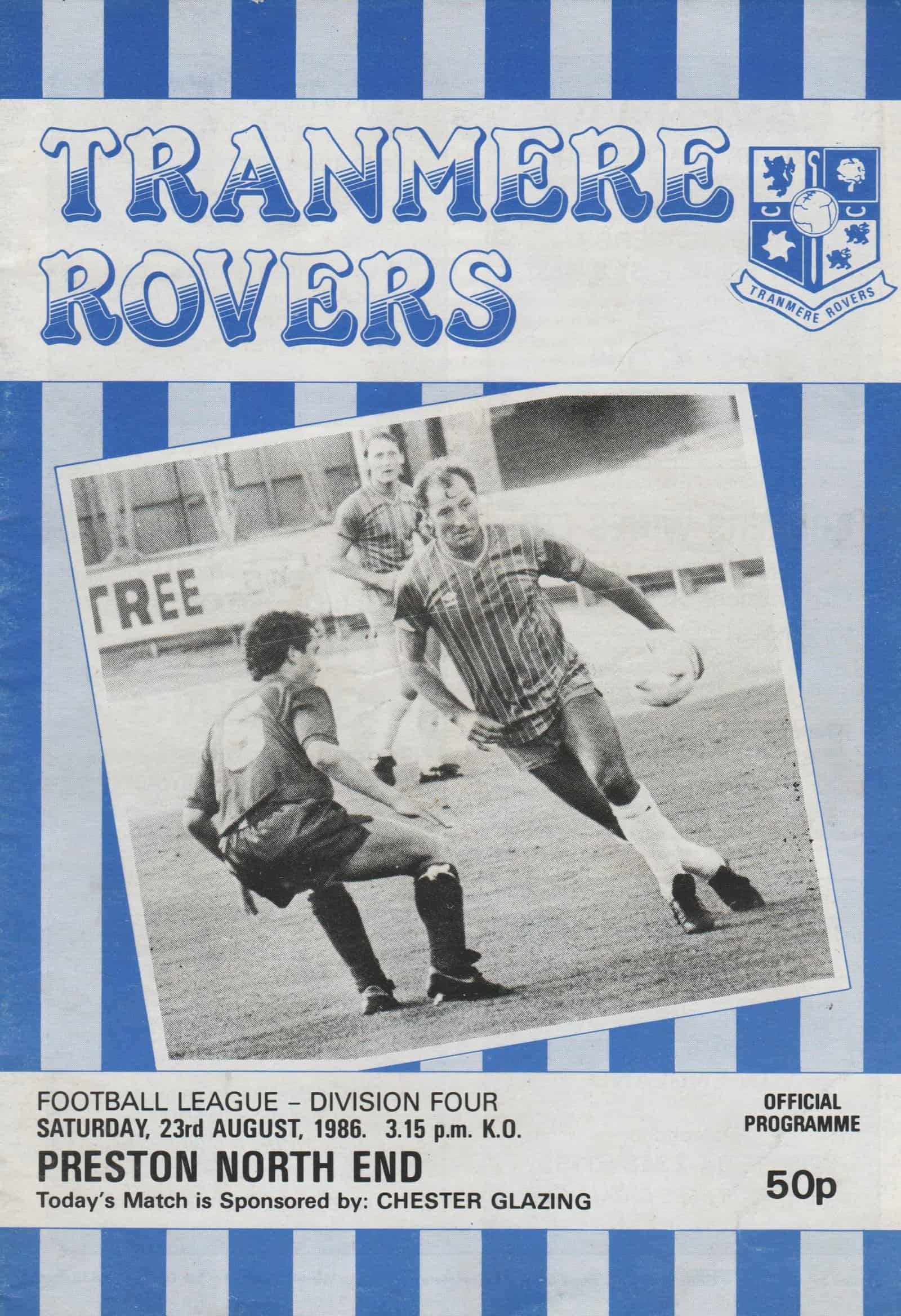 Match: Tranmere Rovers v Preston North End Competition: League Division 4 Date: 23-Aug-1986 Comments: Rating: 3 Condition: Good Weight in grams: 40
